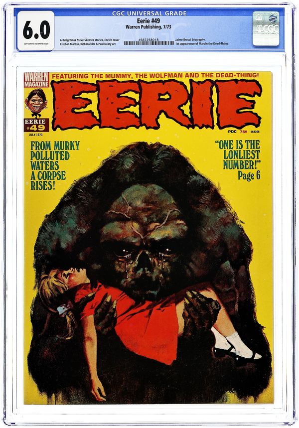 Stories in this issue include: Marvin, the Dead-Thing: One is the Loneliest Number by Al Milgrom and Esteban Maroto; The Mummy Walks: The Death of a Friend by Steve Skeates and Jaime Brocal; Curse of the Werewolf: Midnight Prey by Al Milgrom, Rich Buckler, and Bill DuBay; The Alien Nation: Over Population by Rich Margopoulos and Paul Neary; Fear Itself by Steve Skeates and Isidro Mones; and Dax the Warrior: The Vampire by Esteban Maroto and Don McGregor. Includes guest editorial by pioneering comic book retailer Phil Seuling. Cover art by Enrich Torres. Cover price $0.75.