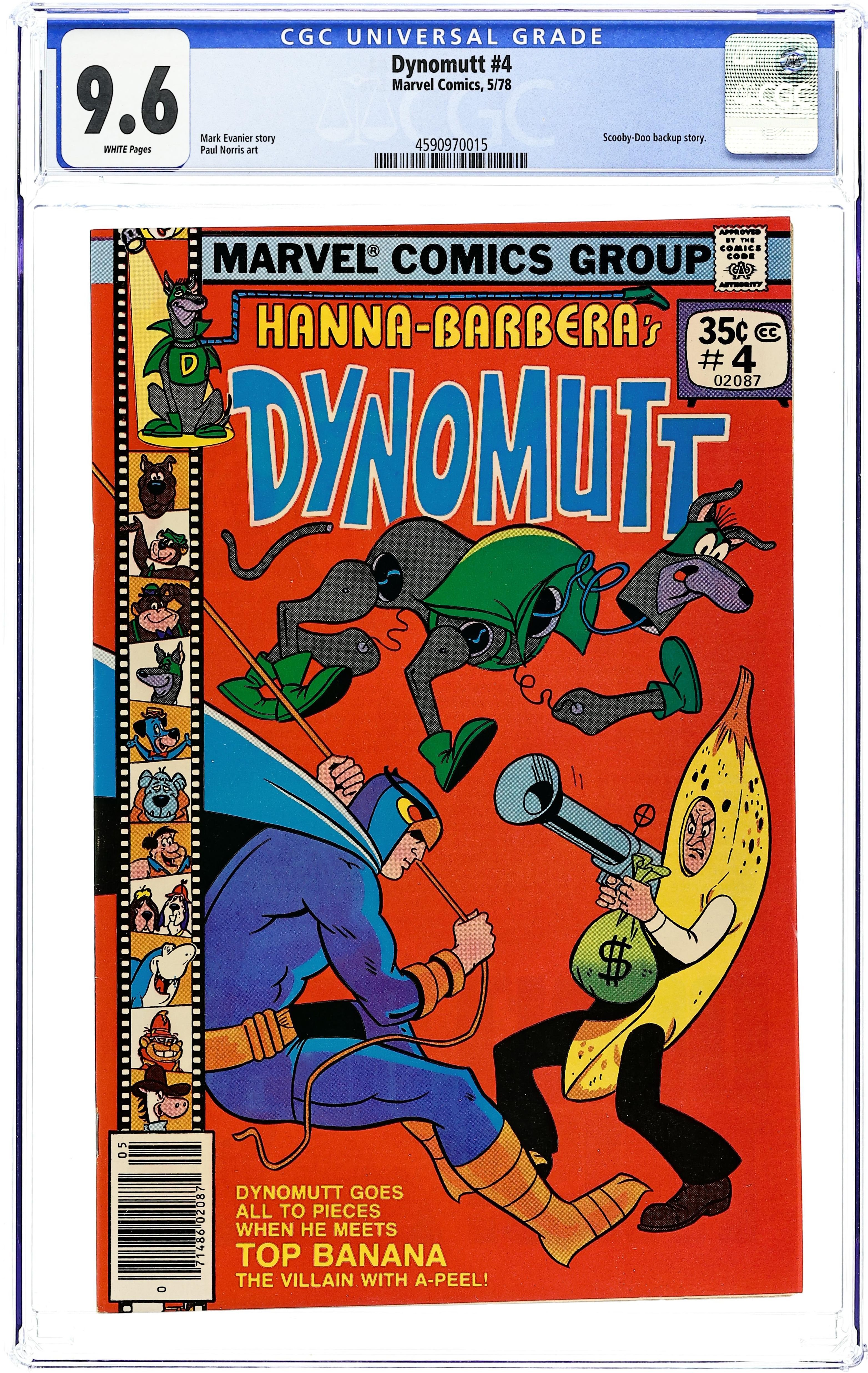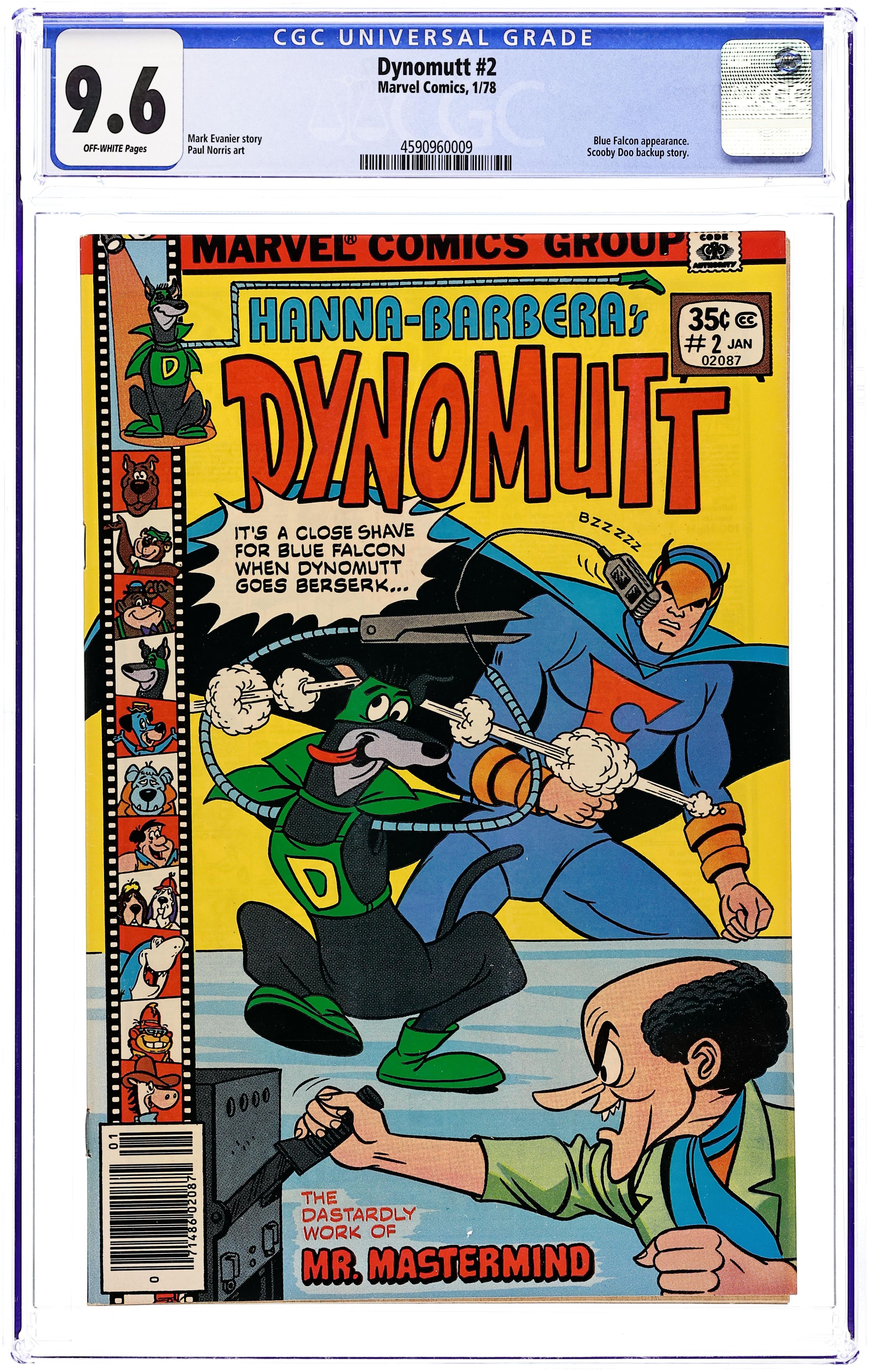 Written by Mark Evanier. Art by Paul Norris and Dan Spiegle. It's a close shave for Blue Falcon when Dynomutt goes berserk in "The Astounding Mr. Mastermind" by Mark Evanier and Paul Norris. Plus: Dynomutt and Blue Falcon in "Identity Crisis" by Evanier and Norris. And: Scooby-Doo, Shaggy, Daphne, Fred and Velma in the back-up story "Fear at Fifty Fathoms" by Evanier and Dan Spiegle. 32 pages, full color. Cover price $0.35.