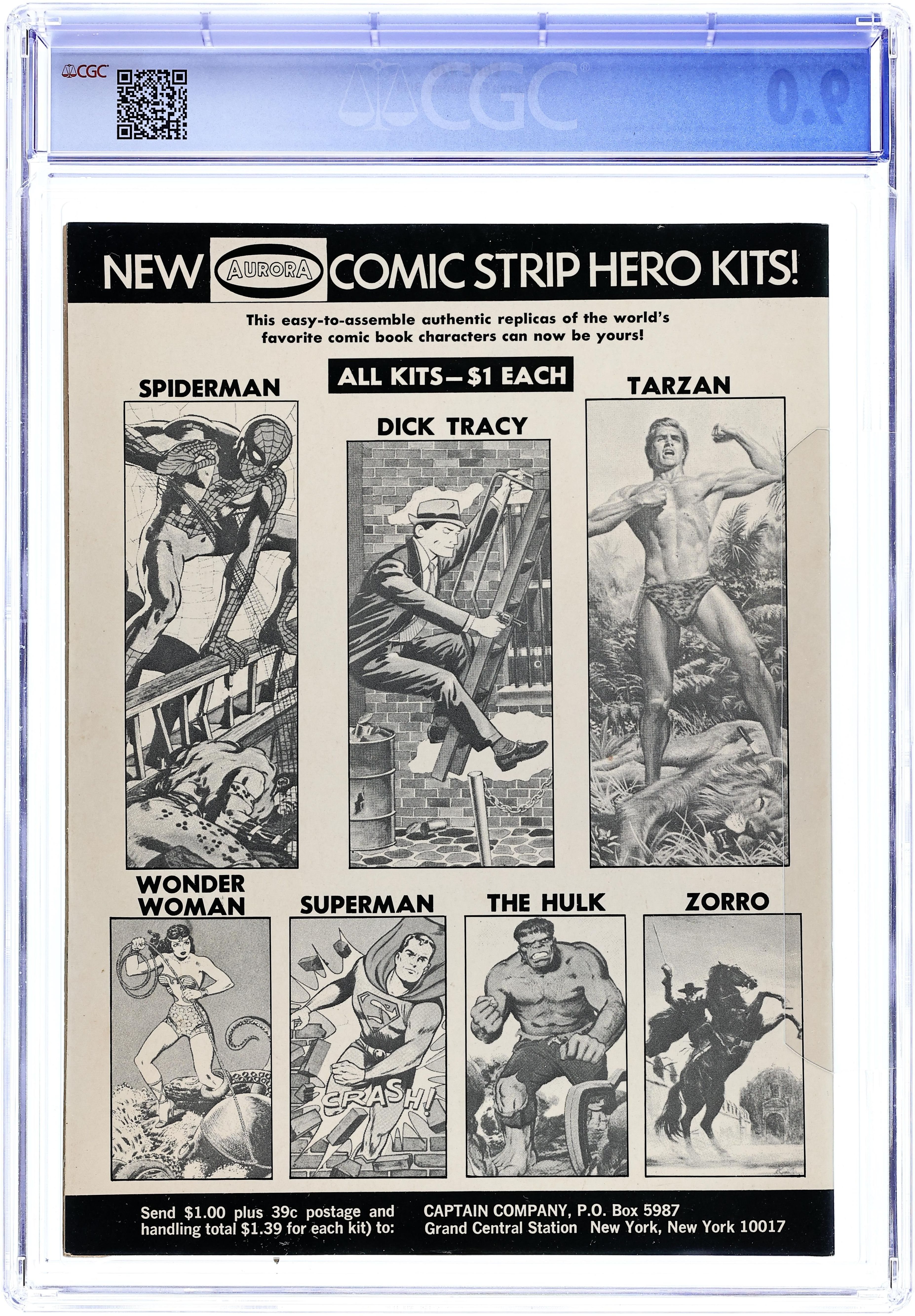 "The Light of Other Worlds!" Part 2 of 2. Script by Roy Thomas. Art by George Perez (breakdowns) and Joe Sinnott (finishes). Cover by Ron Wilson and Joe Sinnott. The Crusader's bizarre attacks on banks across Manhattan continue! But Reed has figured out the villain's pattern! And now the Fantastic Four make a beeline to the Bronx to intercept the Crusader! The battle at the bank rages from the rooftop to the vault to the street! Can the FF shut down the Crusader? Origin of the Crusader (aka Robert Grayson). Flashback cameo by Dr. Horace Grayson. Notes: The Crusader's quantum bands are eventually inherited by Wendell Vaughn (aka Quasar). The letters page includes a letter from comics writer Peter Gillis.) 36 pages Cover price $0.25.