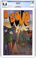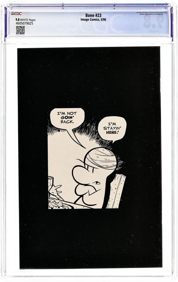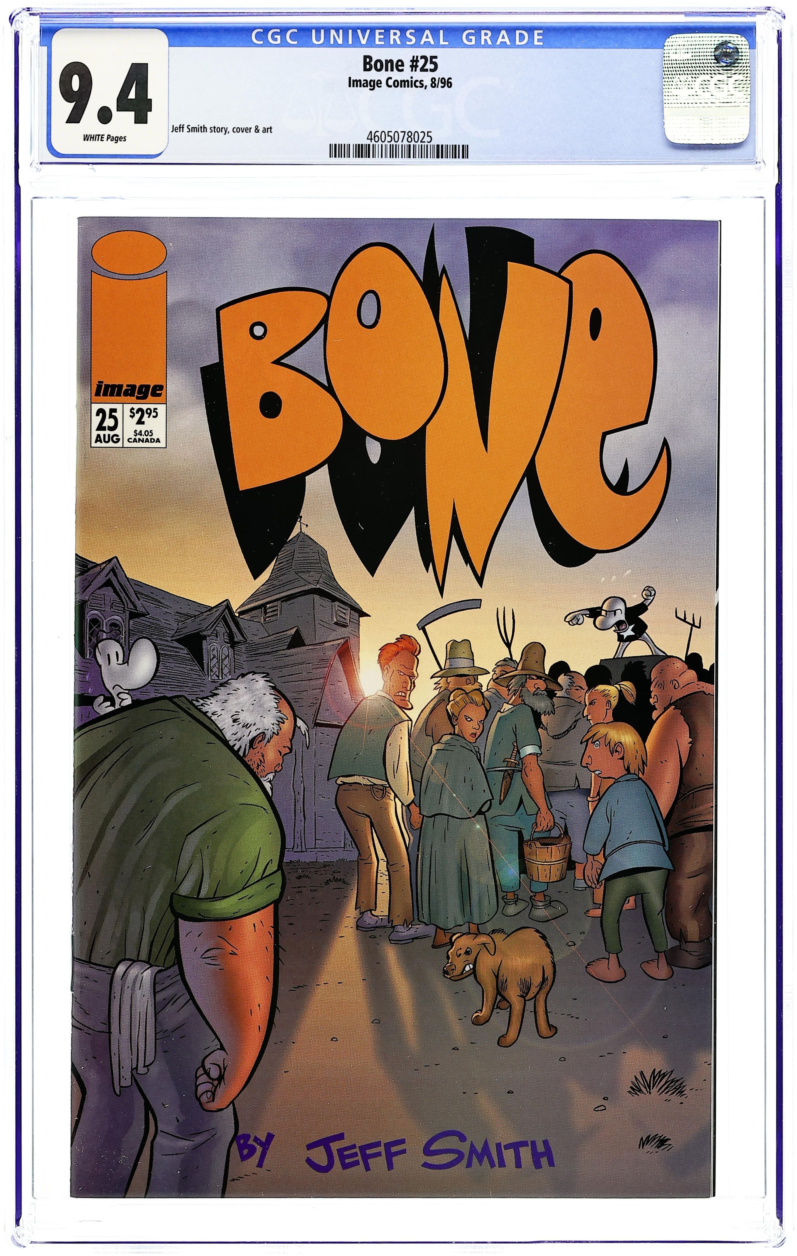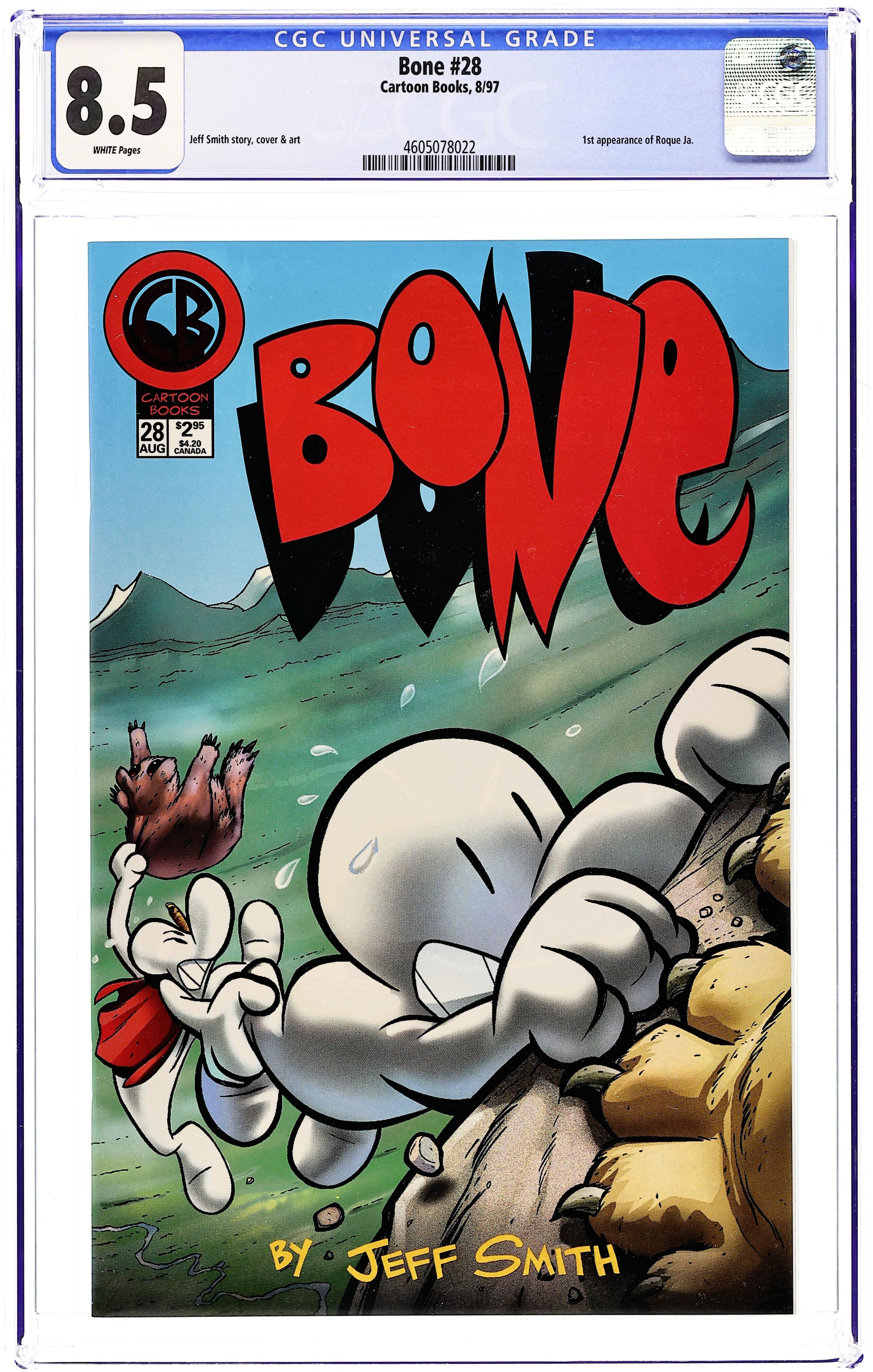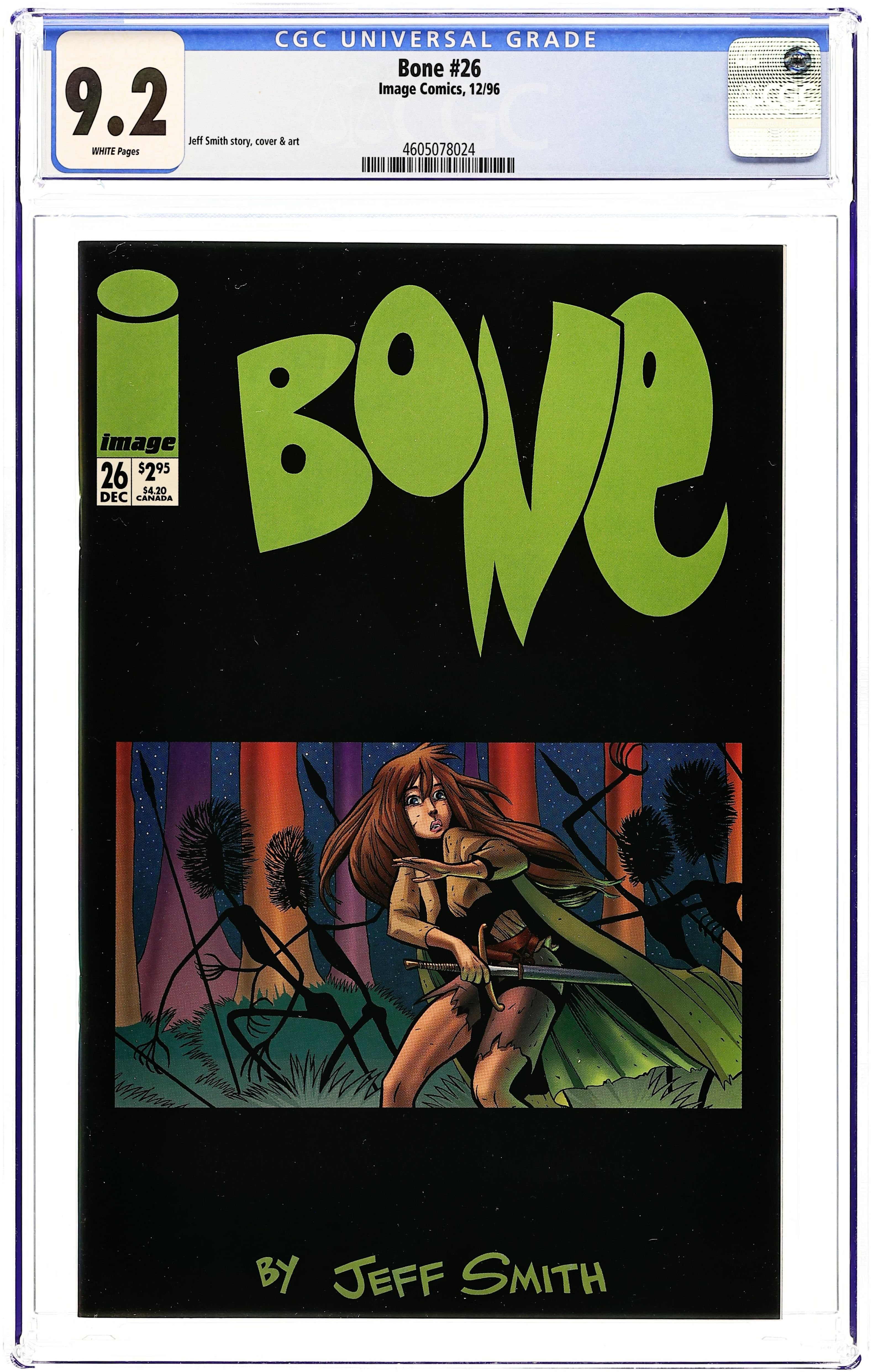 Cover art by Jeff Smith. Untitled story, script and art by Jeff Smith; The Dragon saves Fone Bone, Thorn and Gran'ma Ben from the Rat Creatures. This is a first printing. Most issues from #1-12, and possible some beyond, have been reprinted. Reprints may be identified by a 2nd, 3rd, 4th, 5th, etc. printing notice inside the comic. 28 pgs. $2.95. This is a first printing. Most issues from #1-12, and possible some beyond, have been reprinted. Reprints may be identified by a 2nd, 3rd, 4th, 5th, etc. printing notice inside the comic. Cover price $2.95.