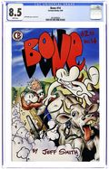 Cover art by Jeff Smith. Untitled story, script and art by Jeff Smith; The Great Cow Race is run, but Rat Creatures interfere with the race. This is a first printing. Most issues from #1-12, and possible some beyond, have been reprinted. Reprints may be identified by a 2nd, 3rd, 4th, 5th, etc. printing notice inside the comic. 28 pgs. $2.95. This is a first printing. Most issues from #1-12, and possible some beyond, have been reprinted. Reprints may be identified by a 2nd, 3rd, 4th, 5th, etc. printing notice inside the comic. Cover price $2.95.