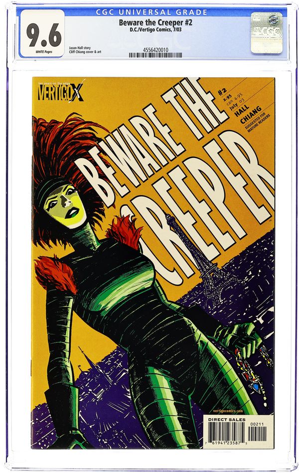 WRITTEN BY JASON HALL; ART AND COVER BY CLIFF CHIANG In stores May 21. Jason Hall and Cliff Chiang continue their provocative take on The Creeper with Part 2 of the 5-part miniseries! What begins with a simple jewel theft quickly escalates to an outrageous crime of a more "repulsive" nature, as the sexy and mysterious Creeper begins to make the aristocracy pay for its sins. But is it just a case of revenge, or is there more to The Creeper's wild and scandalous art-crimes? Either way, the citizens of Paris will never be the same! MATURE READERS FC, 32 PG. (2 OF 5) $2.95 Cover price $2.95.