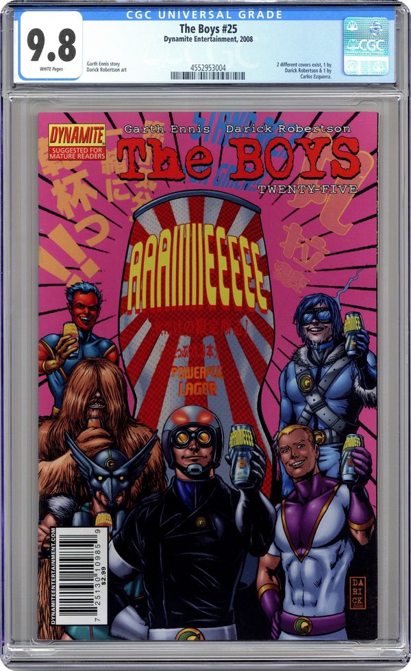 Written by Garth Ennis. Art by John McCrea. Cover by Darick Robertson. Things heat up at the super-retreat, as new heights of hedonism are scaled and Jack From Jupiter introduces A-Train to the depravity of 'Forbidden'. The Homelander, meanwhile, is indulging in a little peccadillo of his own- one that will have far-reaching consequences for the world's superhuman community. Hughie finds himself talking dirty, Payback get an offer they can't refuse- and the Boys put their own plan into operation... Cover price $2.99.