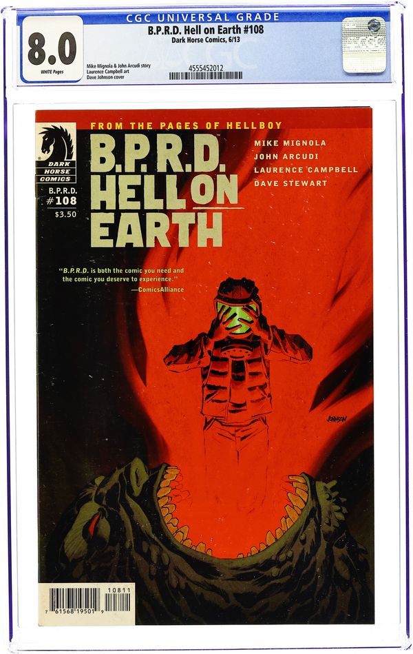 (W) Mike Mignola, John Arcudi (A) Laurence Campbell (CA) Dave Stewart, Dave Johnson A spreading contagion in the Chicago wastelands turns the residents of the Windy City into vicious monsters. Will these creatures and the giant bat-faced monsters stop the B.P.R.D. from saving their missing agents? Cover price $3.50.