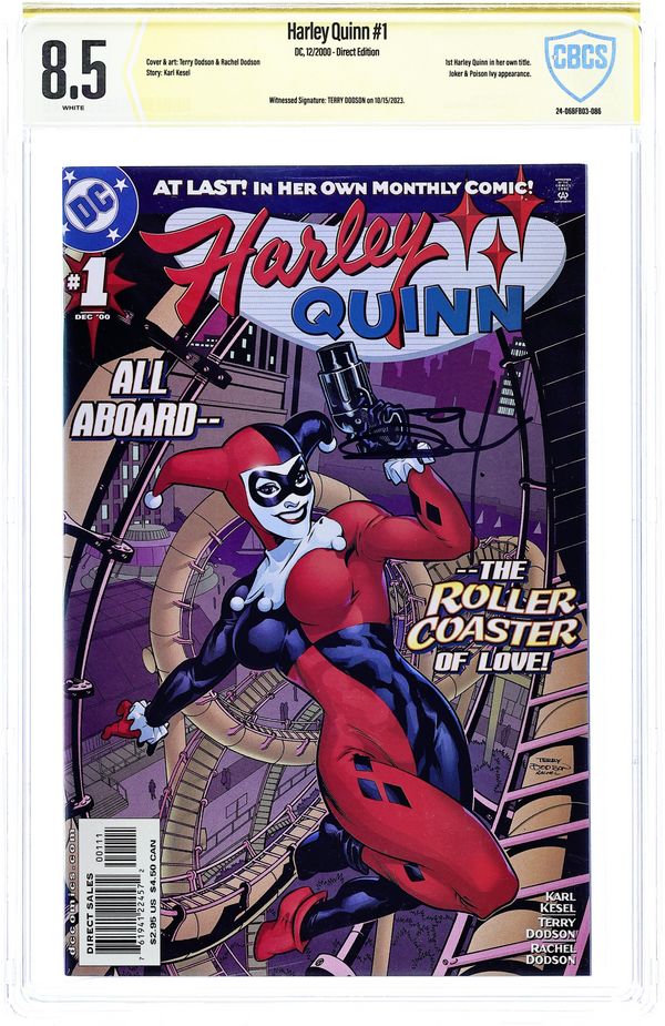 Cover pencils by Terry Dodson, inks by Rachel Dodson. A Heart Broken in Two!, script by Karl Kesel, pencils by Terry Dodson, inks by Rachel Dodson; Harley decides to join up with Two-Face but turns on her new boss when he tries to abduct a schizophrenic and make her his new main-squeeze. 44 pgs., full color. $2.25. Cover price $2.25.