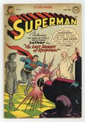 Cover art by Win Mortimer. Superman's Last Job starring Superman and Red Evans, script by Jerry Coleman, art by Al Plastino. Superman's Secret Past, script by Edmond Hamilton, art by Al Plastino; Superman returns to Smallville. The Man Who Caught a Sub text story by Jack Miller. The Titanic Thefts starring Superman and Lex Luthor, script by Bill Finger, pencils by Wayne Boring, inks by Stan Kaye. Superboy stars in a one-page public service announcement, Don't Give Fire a Place to Start. 44 Pages, Full Color. Cover price $0.10.