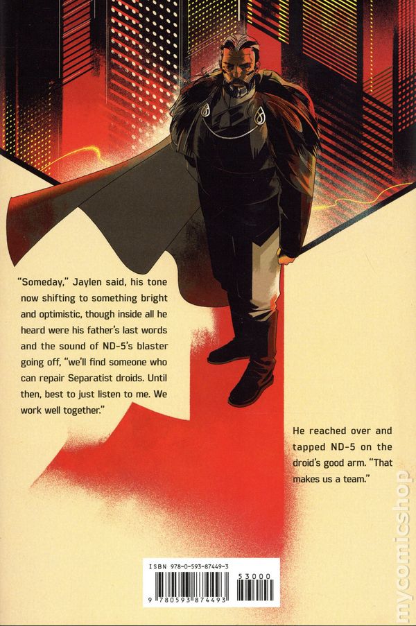 1st printing. By Mike Chen. Cover by Matt Taylor. ND-5 and Jaylen Vrax embark on their descent into the galaxys underworld in search of answers and opportunity, in this essential prequel to Star Wars Outlaws. Jaylen Barsha, heir to his familys immense power and wealth, had his life charted out for him neatly and meticulously by his parents, even though he suspected his neglected half-brother Sliro would be a better fit for the bright corporate future his parents envisioned. Then the Empire stripped it all away on trumped-up charges of conspiracy against his family. Before he can reach Sliro for help redeeming the Barsha name, a battle droid arrives at the family compound with a mission to kill every last member of the Barsha clan. Jaylen manages to fend off the attack as the sole survivor, but realizes the droid, who he reprograms, is his only chance to stay alive. But he can no longer be Jaylen Barsha—hell have to live now as Jaylen Vrax. Former Separatist battle droid ND-5 knows he should be scrap metal, all things considered. He was a proficient contributor to the Separatist cause, but what is a soldier without a war? A trigger without aim? Loyalty is in his programming, and Jaylen, who treats him as more than just a weapon, has earned it. Perhaps, the droid thinks, with a partner he can be more. ND-5 just has to earn Jaylens trust. With the threat against the Barsha clan still shrouded in mystery, the pair has no choice but to leverage the chaos and disappear. They find sanctuary in the anonymity of the underworld, building their reputation among scoundrels, bounty hunters, and crime syndicates. But when their latest score gives the first real clue in years to who sent ND-5 after Jaylens family, their biggest opportunity presents a new kind of risk. Do they give up this chance at the wealth and power Jaylen was denied to pursue answers? Or will ambition and the weight of the past shatter their unlikely partnership? Hardcover, 6-in. x 9-in., 384 pages, Text Only. Cover price $30.00.