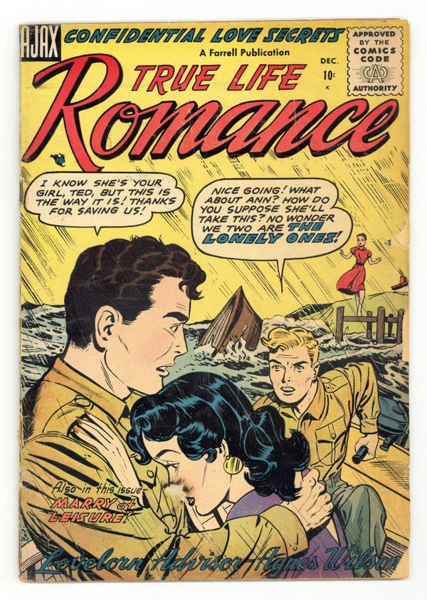 Cover by Vince Colletta. Stories by unknown. Art by Vince Colletta, Jay Scott Pike and John Tartaglione. Every tale taken from real life! In this issue: "Good-Bye Kiss!" with art by Vince Colletta; "The High Cost of Loving" with art by Jay Scott Pike; "The Girl Next Door!" with art by John Tartaglione; "The Man I Love" with art by Vince Colletta; and 2-page text story "A Star Never Dims"! 32 pages, full color. Cover price $0.10.
