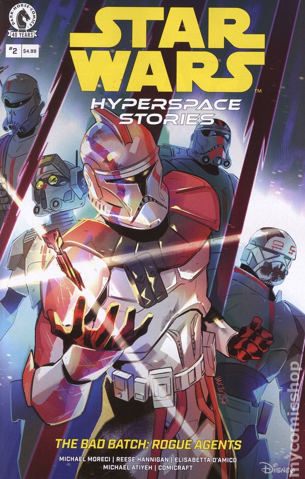 (W) Michael Moreci (A) Reese Hannigan; Elisabetta D'Amico (CA) Valeria Favoccia (C) Michael Atiyeh The race is on to find the missing Separatist scientist and his doomsday device! But with their newfound adversary in the lead, the Bad Batch must turn to an old friend for help, finding themselves involved in an underworld shootout as a result! With friends like these, who needs enemies?• The team that brought you the hit comics mini-series Star Wars: Hyperspace Stories: The Bad Batch—Ghost Agents returns with this thrilling follow-up series! “If you're a Clone Wars/Bad Batch fan you're going to love this series. The writing is incredible, the artwork is incredible. And it all blends together into an issue, and a series, you don't want to miss!” —Nerd Initiative Cover price $4.99.