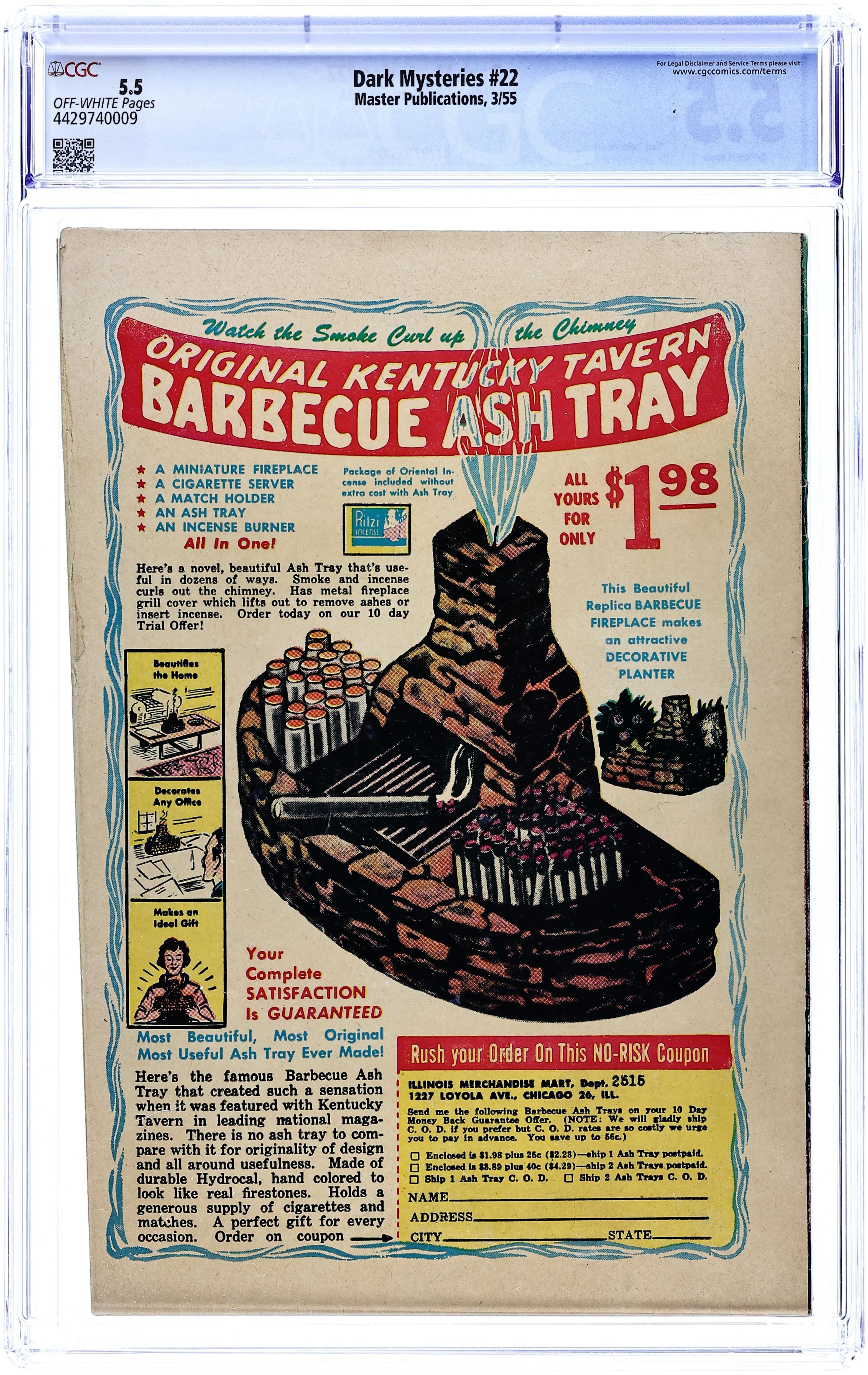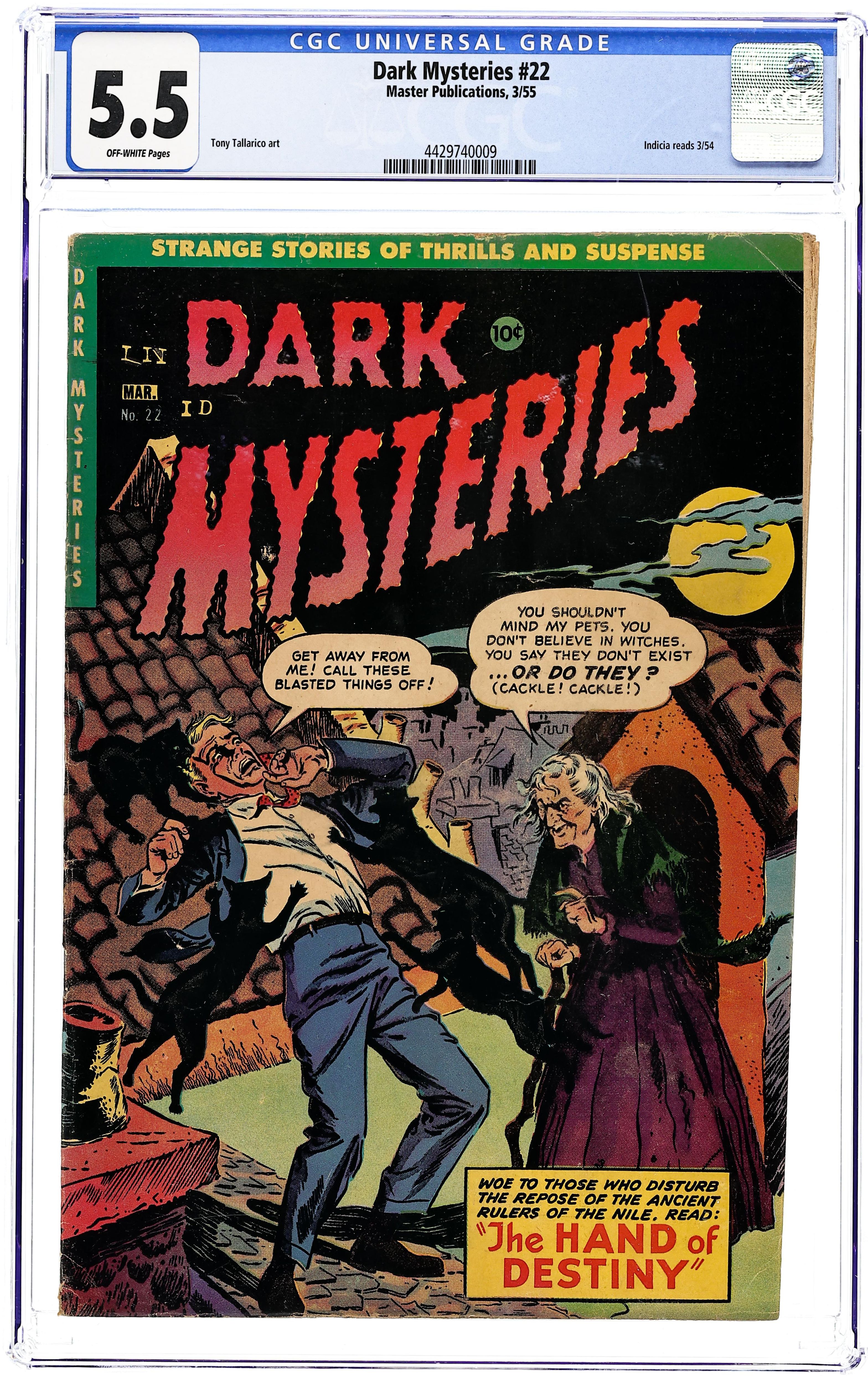 "Hand of Destiny"; Archeologist Reid Cragg uncovers an Egyptian tomb and finds therein the "hand of destiny"; The mummified hand of the long-dead chief executioner; The hand can be commanded to kill. "Spectral Lighthouse"; On a sailing trip Bob and Ann Dart discover an abandoned lighthouse; They are greeted by ghostly pirates of the past, but can escape thanks to their modern outboard motor. "Haunted Voice"; Korean war veteran Mark Sterling has lost his hearing in the war; When he purchases a new hearing aid, a ghostly voice starts talking to him; The voice informs him of a crime and leads him to the scene. "When Witches Walked" article; facts about witches. "The Malignant Pearls" article; The pearl as malign omen. "Pal Trouble," art by Tony Tallarico; Two hobos are partners in crime; But Pete always beats Mike and one day throws him out of a freight train to die. 36 pgs., full color. Cover price $0.10.