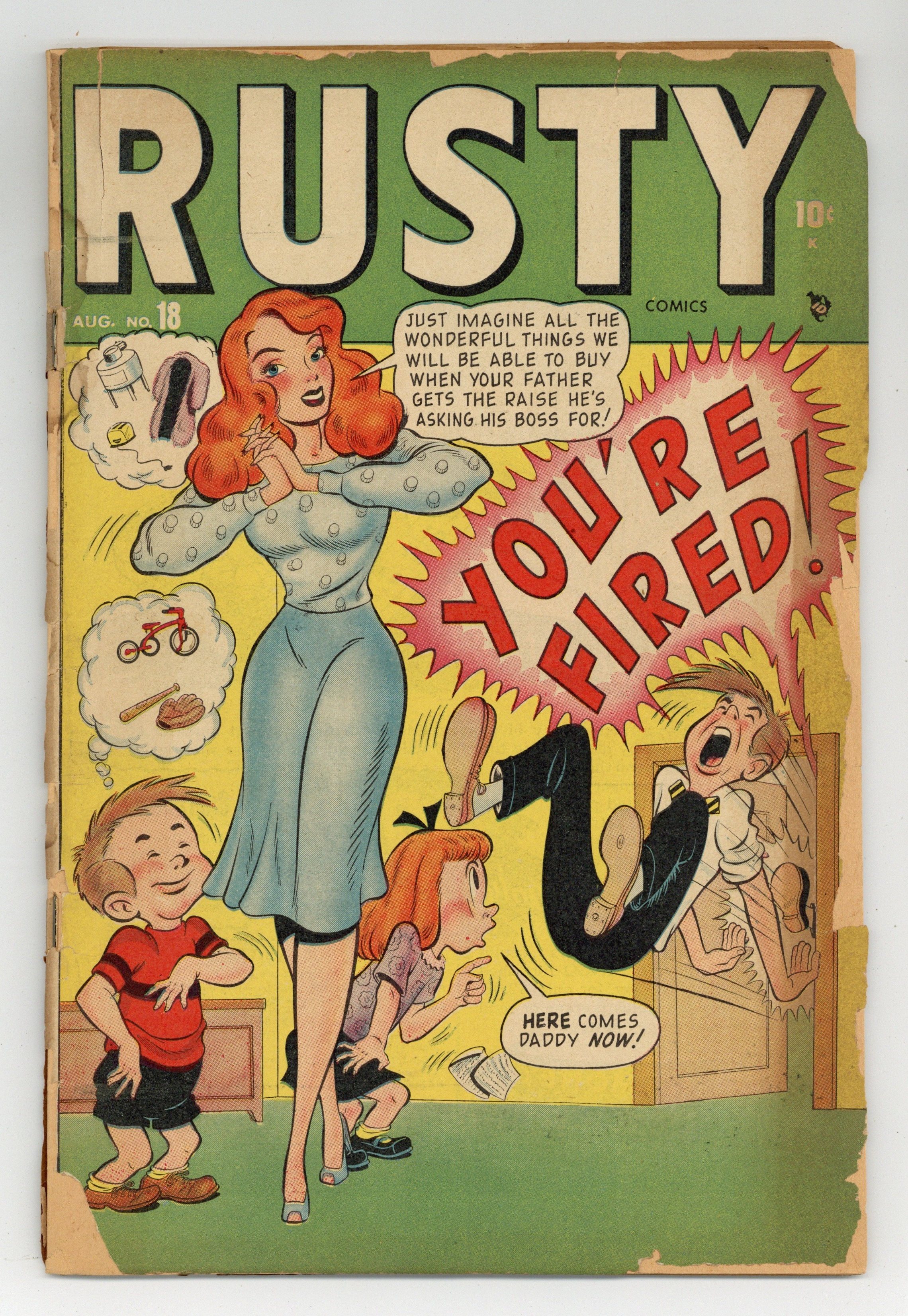 Stories by unknown. Art by unknown. Rusty stars in: "Tain't Paint!"; "Rusty's Woeful Week-end!"; "Muscle Man!"; "Backward Parent!"; and "Tough Customer!" Also in this issue: Lana in "The Show's the Thing!"; 2-page text story "A Work of Art"; and Millie the Model in "The Long and Short of It!" 48 pages, full color. Cover price $0.10.