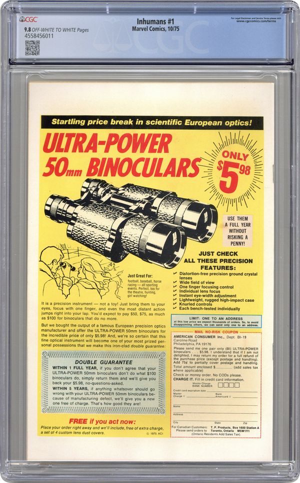 They're back -- because you demanded it! Black Bolt and his comrades in-combat battle Blastaar the Living Bomb! Featuring: 19 page Inhumans story "Spawn of Alien Heat." Characters: Inhumans [Black Bolt; Medusa; Karnak; Gorgon; Triton]; Villain: Blastaar; Maximus; Intro: Iridia; Guest: Stallior; Centarius; Leonus; Avius; Hulk (flashback); Human Torch [Johnny Storm] (flashback). Written by Doug Moench, with art by George Perez and Frank Chiaramonte. Cover by Gil Kane and Frank Giacoia. Cover price $0.25.