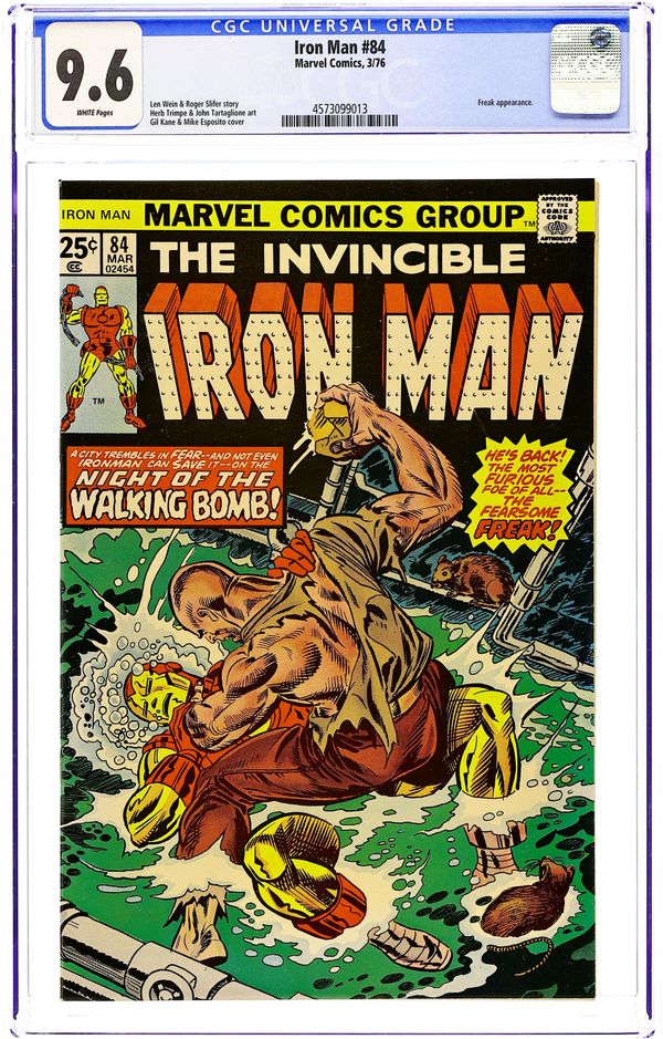 "The Night of the Walking Bomb!" Story by Len Wein. Art by Herbe Trempe and Marie Severin. Tony Stark's friend and erstwhile Iron Man stand-in, Happy, has collapsed from injuries sustained while wearing the Iron Man armor. Can Tony find a way to help his friend before it's too late, or will Happy become just another casualty in the pursuit of justice? 32 pages. Marvel Value Stamp. Cover price $0.25.