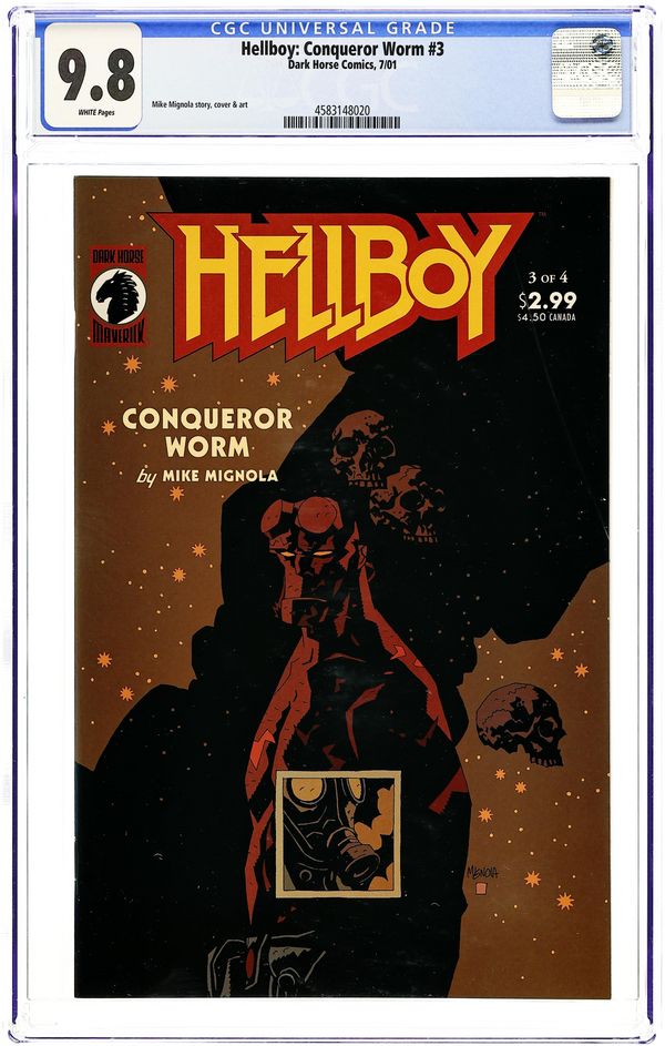HELLBOY: CONQUEROR WORM #3 (OF 4) created, written, & illustrated by MIKE MIGNOLA The conqueror worm arrives, transforming Nazis into frog people and preparing to bring about the downfall of mankind. Meanwhile, Hellboy falls through a floor and encounters a cabinet full of human heads, and Roger gets a beating. On sale July 11 FC, 32pg (3 of 4) Cover price $2.99.