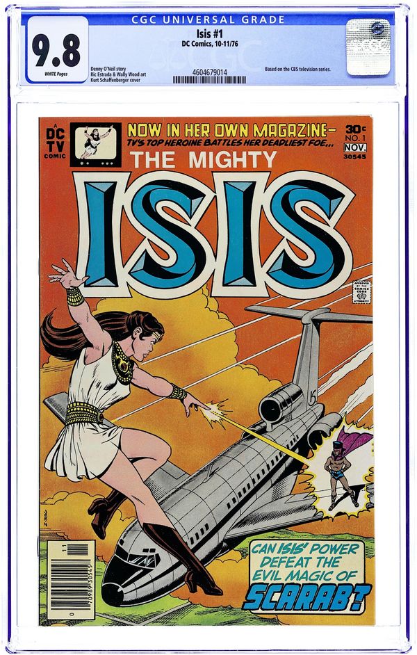 Starts Jan 3 "Scarab--the Man Who Would Destroy." Based on the live action Saturday morning television series, Isis lasted just eight issues. Here she battles an ancient sorcerer freed from a pyramid that has been transported from Egypt to America. Gerald Ford of Earth S appears. Script by Denny O'Neil, pencils by Ric Estrada, inks by Wally Wood. Cover by Kurt Schaffenberger. Cover price $0.30.