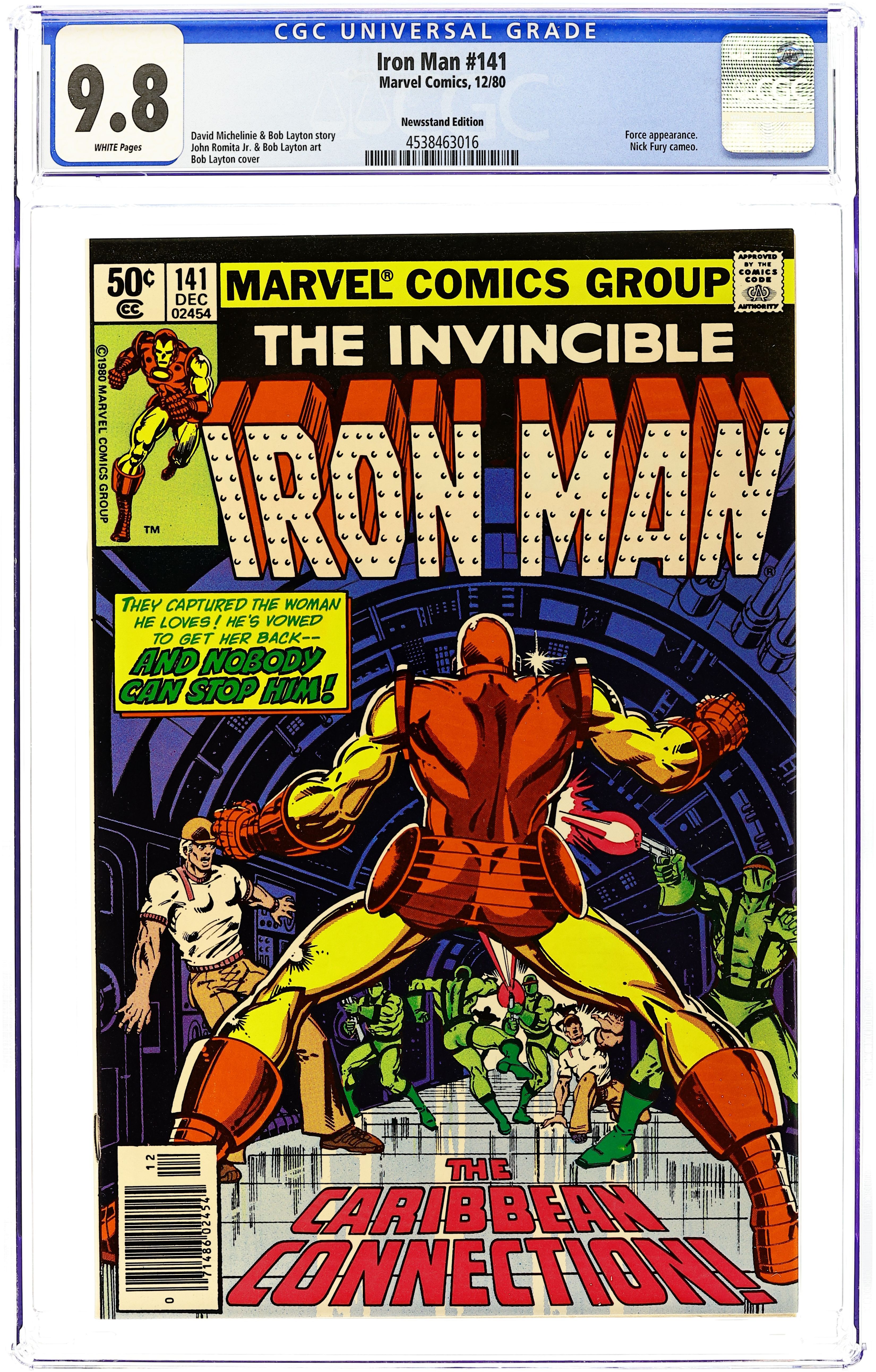 Newsstand Edition. "The Caribbean Connection" Part 2 of 2. Story by David Michelinie and Bob Layton. Art by John Romita, Jr. and Bob Layton. Cover by Bob Layton. Justin Hammer is the man behind the stealing of Tony Stark's yacht and the kidnapping of Bethany Cabe. Iron Man battles both Force and Hammer to get them back! Cameo appearance by Nick Fury. 32 pages Cover price $0.50.