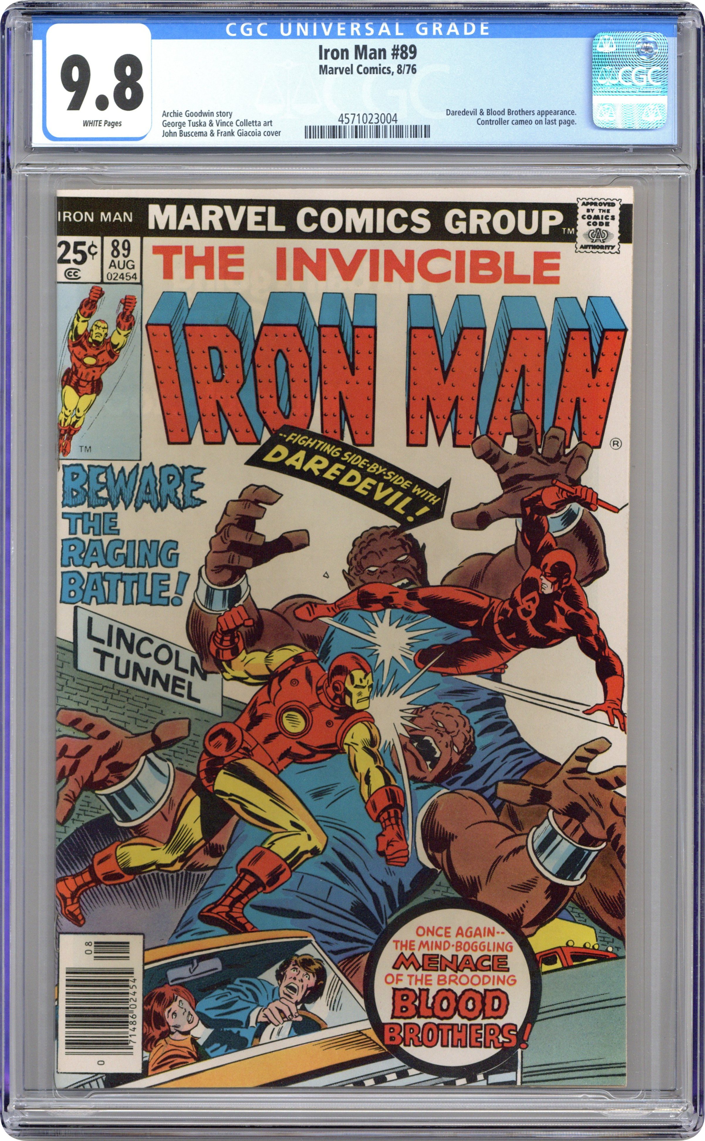 Guest-starring Daredevil. Part 2 of 2. Story by Archie Goodwin. Art by George Tuska and Vince Colletta. Beaten and on the verge of drowning, Iron Man has fallen victim to the deadly Blood Brothers, foes Shell Head has never defeated without help. Well, help has just arrived in the form of Daredevil, the Man Without Fear. 32 pages. Cover price $0.25.