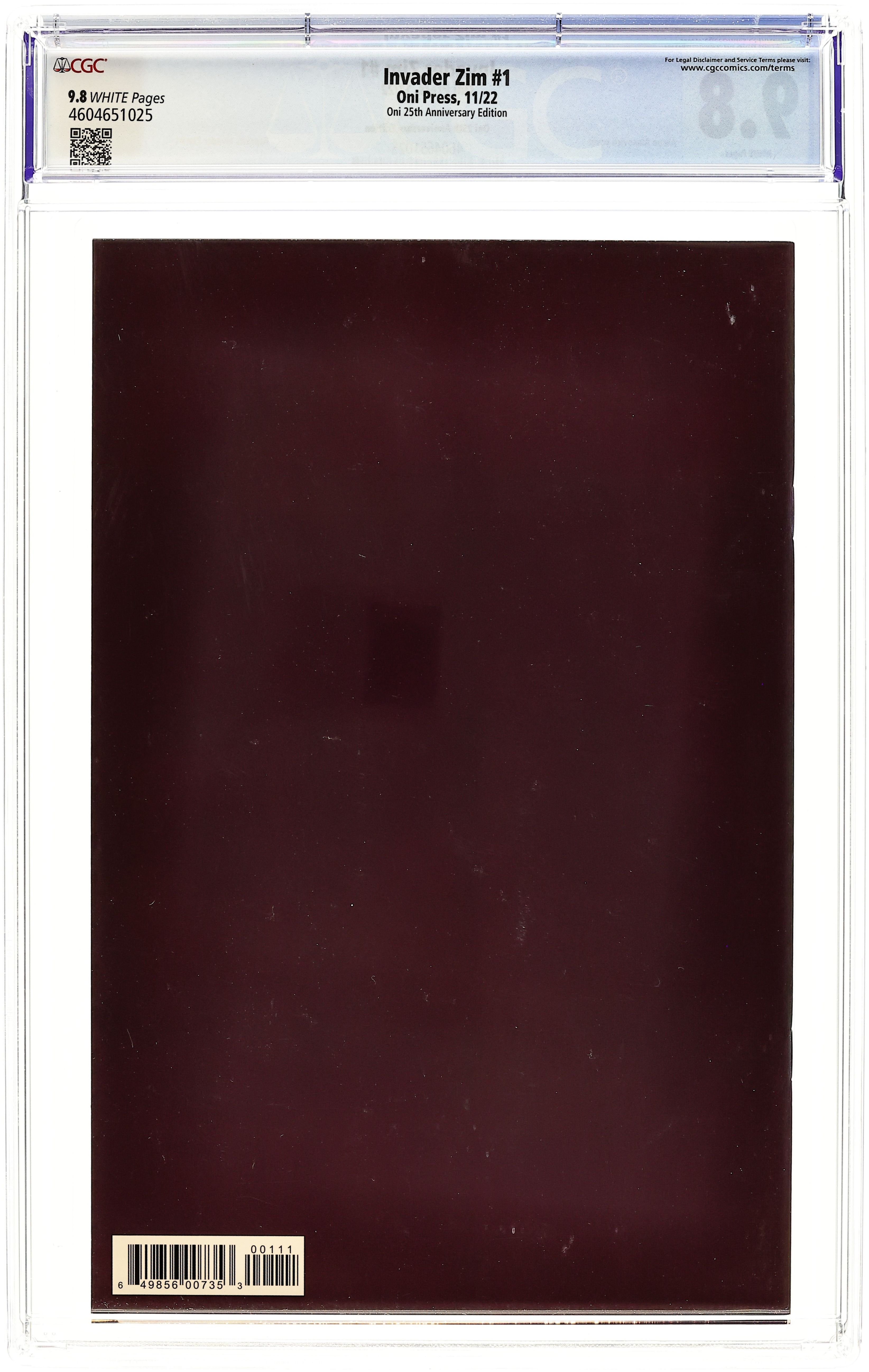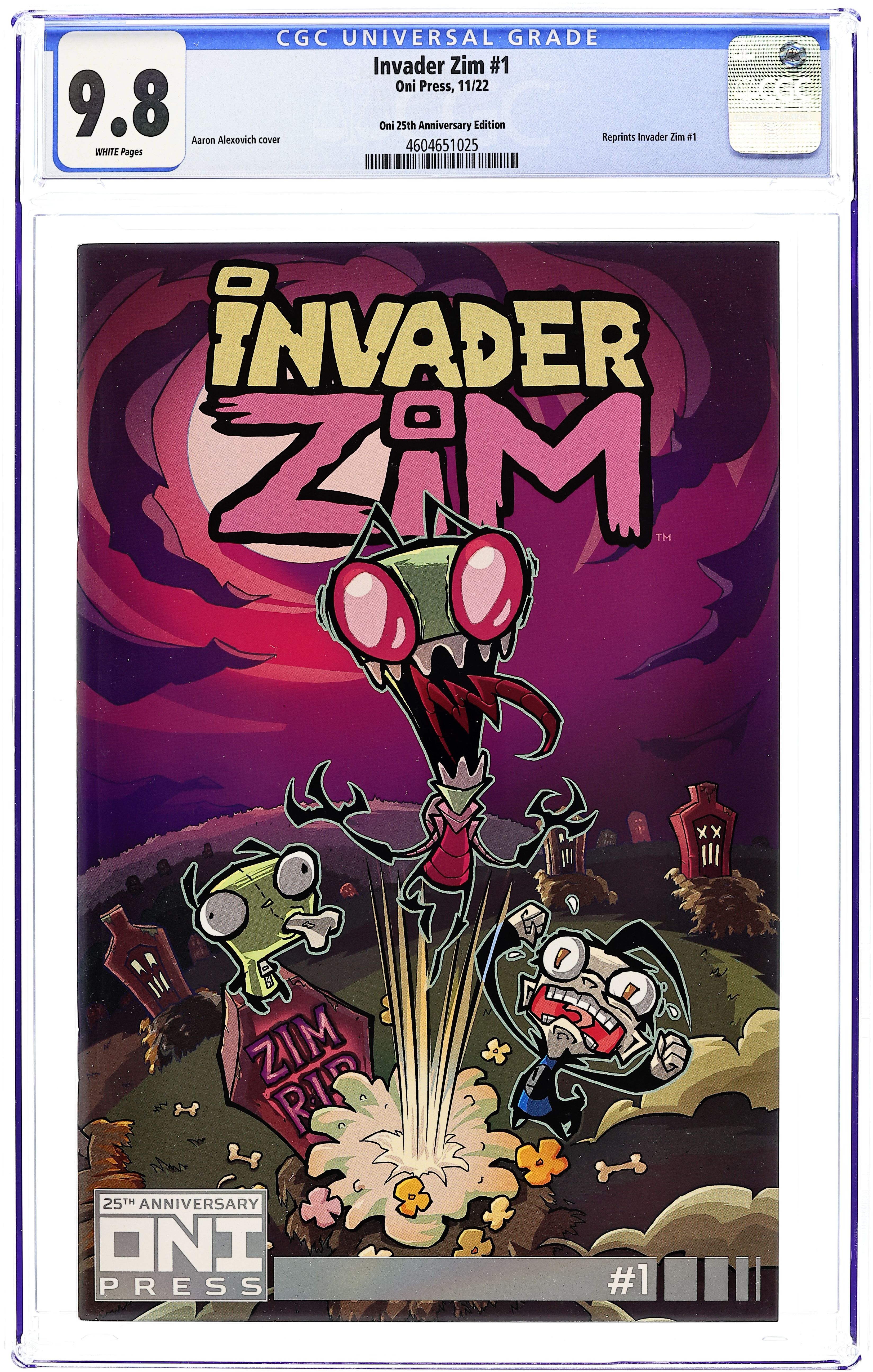 Written by Jhonen Vasquez. Art by Aaron Alexovich, Megan Lawton. Cover by Aaron Alexovich. The comic that launched a thousand Girs: Invader ZIM #1 returns in this special Oni 25th Anniversary Edition! Cover price $9.99.