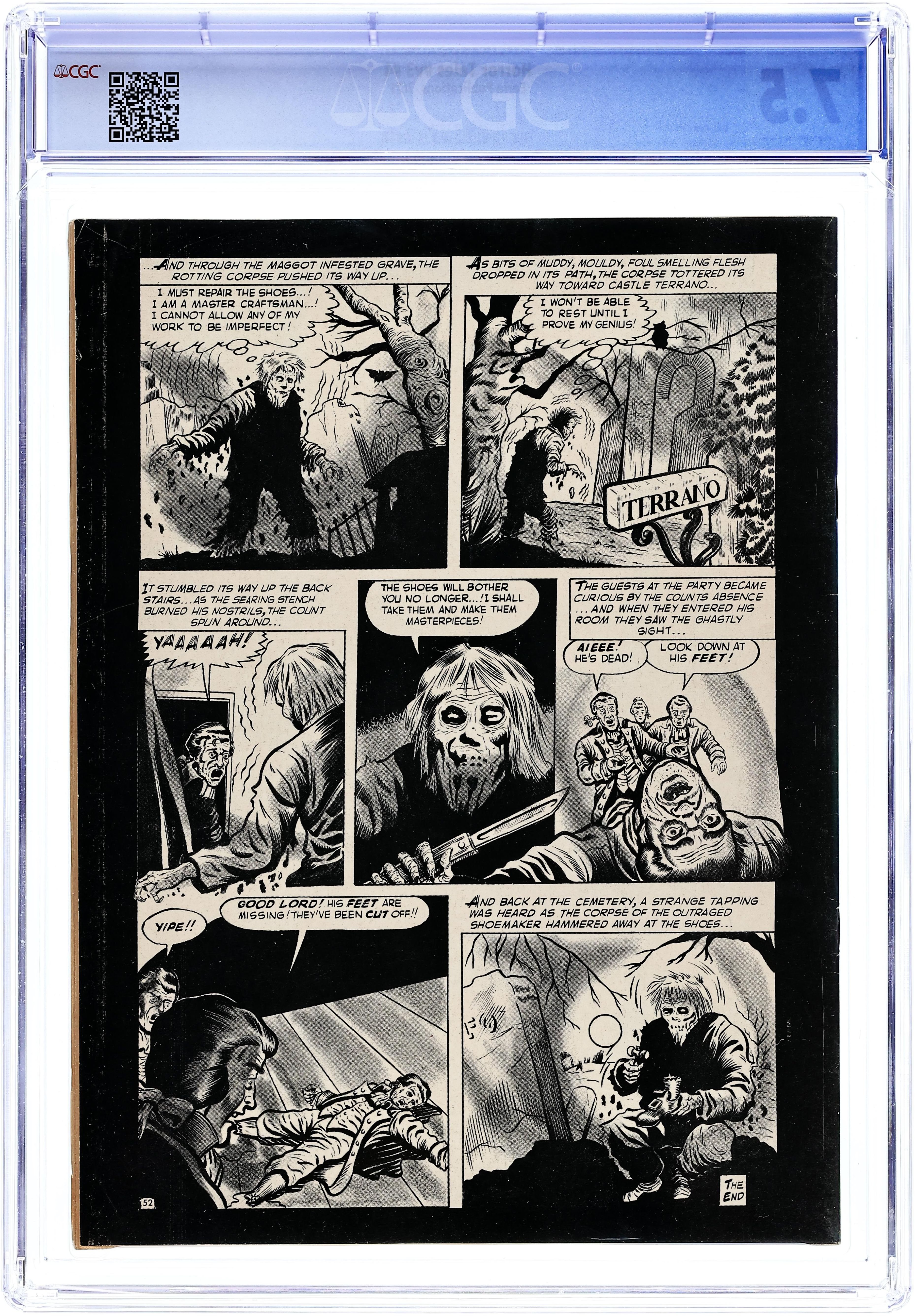 Cover art by Bernie Wrightson. "All In The Family...," script by Mary Skrenes (as Virgil North) and Bernie Wrightson (plot), art by Bernie Wrightson; When Fred and Mary are stranded in the swamp they find a house that Mary had nightmares about the night before. One page of Cain's Game Room cartoons, art by Sergio Aragones. Realm of the Mystics page, art by Jack Sparling; Retelling of the Muslim legend of Zacornu, the Tree of Demons. "Never Deal With a Demon," script by Jack Oleck, art by Win Mortimer; Cooper summons a demon to give him money and he is safe from the demon as long as he doesn't go thru a red door. "To Die for Magda!", script by Carl Wessler, art by Alex Nino; Stephan is tricked into signing a fake confession stating that he's a warlock. 36 Pages, Full Color. Cover price $0.20.