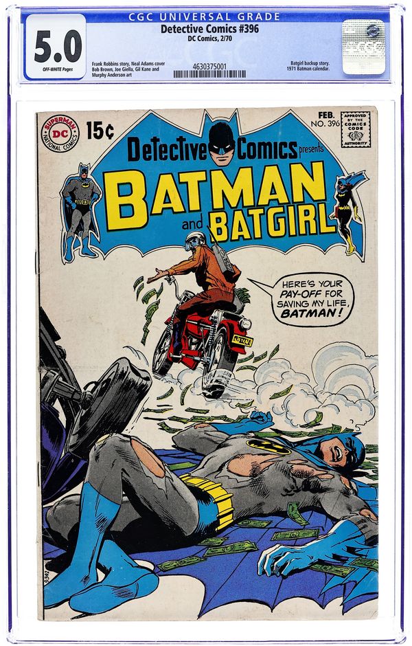 Cover by Neal Adams. "The Brain-Pickers!," script by Frank Robbins, pencils by Bob Brown, inks by Joe Giella; Rory Bell, as stock market whiz, is kidnapped for his knowledge but he manages to send a hidden message to Batman. "The Orchid-Crusher," script by Frank Robbins, pencils by Gil Kane, inks by Murphy Anderson and Gil Kane (page 1); Batgirl attempts to track down the Orchid killer thru a computer dating service. Plus a classic suspense reprint, "The Master of Mind over Matter!," script by Jack Miller, pencils by Gil Kane, inks by John Giunta; Derek Blake discovers the secret of Elmo the Great's powers. 36 pgs., full color. $0.15. Cover price $0.15.