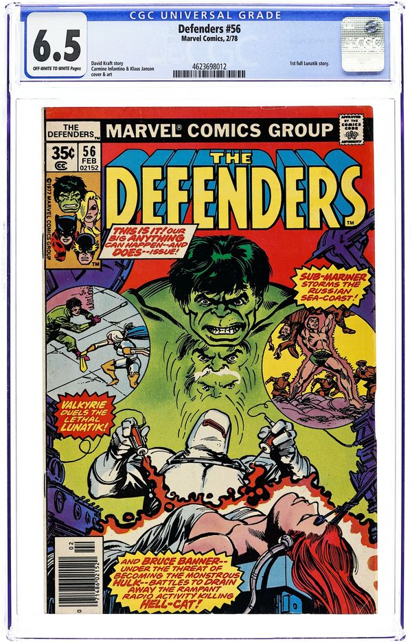 Cover pencils by Carmine Infantino, inks by Klaus Janson. Val's New York Adventure!, script by David Anthony Kraft, pencils by Carmine Infantino, inks by Klaus Janson; Dr. Banner helps Soviet scientists remove the radiation poisoning from Namor, Hellcat and Nighthawk; Red Guardian, who is now composed of nuclear energy, is kept by the Russian government and the rest of the Defenders are escorted out of the country; Valkyrie battles Lunatik. 36 pgs. $0.35. Cover price $0.35.