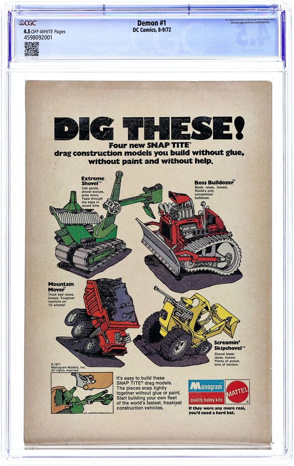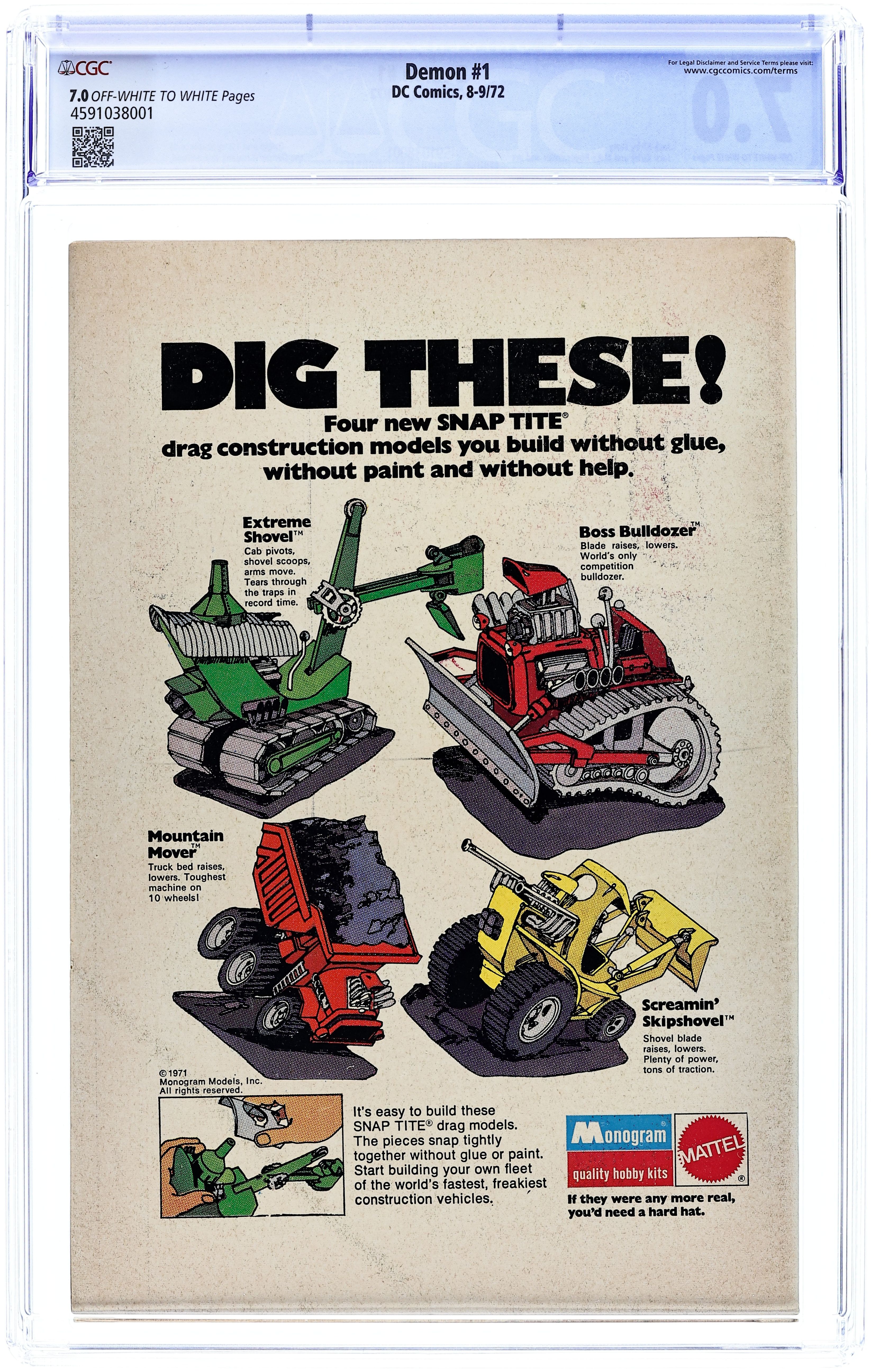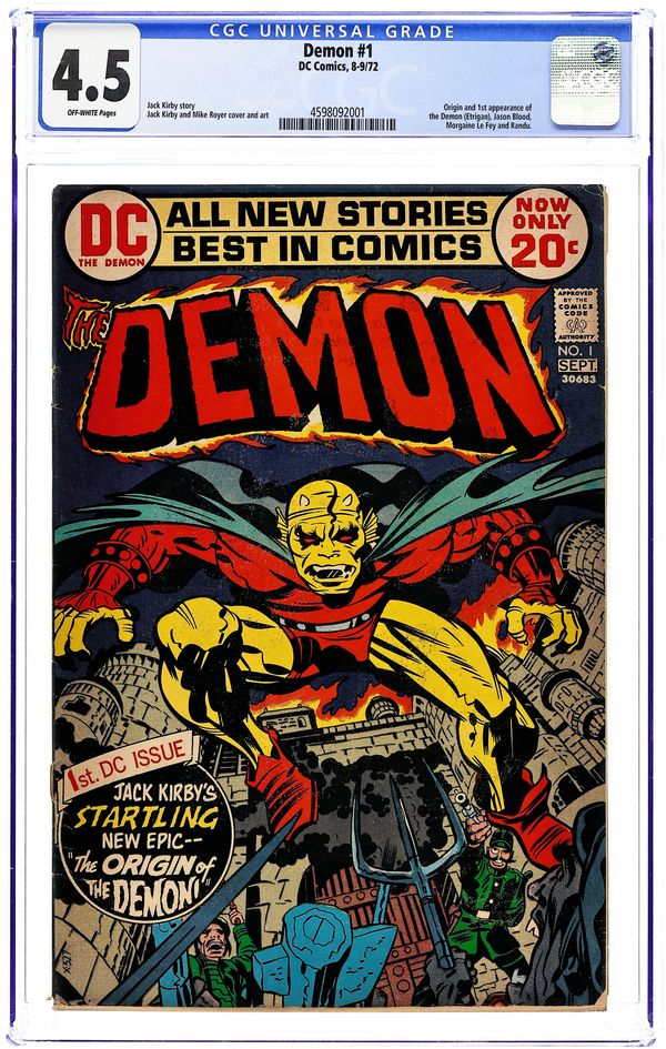 Witness the fall of Camelot, and the rise of the Demon. Features the origin of Etrigan the Demon and the villainy of Morgaine Le Fey. "Unleash the One who Waits!" Story and art by Jack Kirby. Note: First appearance of Etrigan, the Demon. Cover price $0.20.