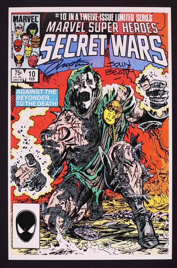 Marvel Super Heroes Secret Wars #10 Cover Print by Mike Zeck and John Beatty- Marvel Super Heroes Secret Wars #10 Cover Print by Mike Zeck and John Beatty. Signed by John Beatty and Jim Shooter. High quality print on heavy stock. 11" x 17", full color.