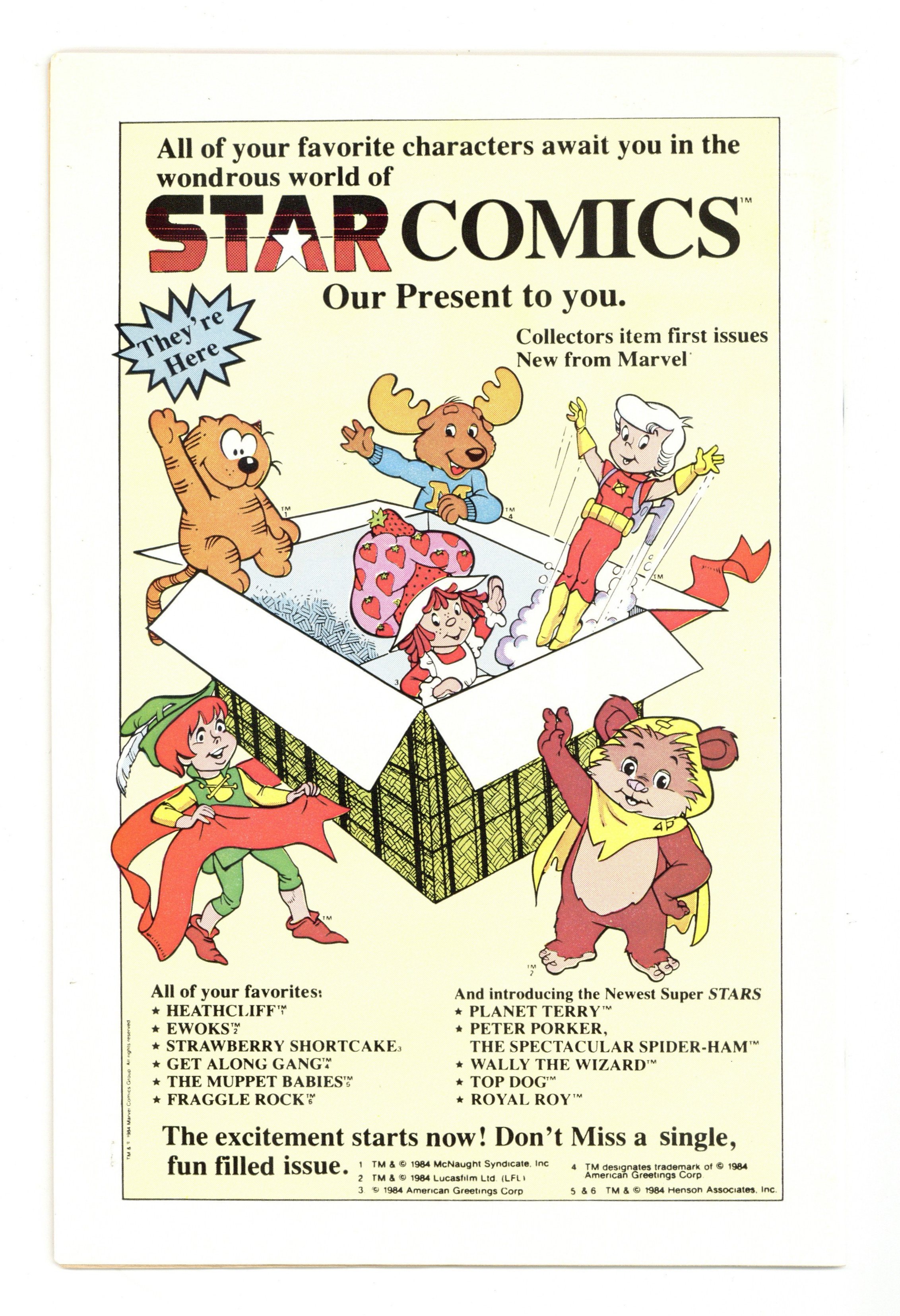 Newsstand Edition. Cover pencils by John Romita, Jr., inks by Al Milgrom. "The Triumph of the Green Goblin," script by Dennis Marks (Original Screenplay) and Tom DeFalco, pencils by Dan Spiegle, inks by Vincent Colletta; Green Goblin busts up a college costume party to steal his secret Goblin Formula. "The Hulk vs. the Phoomie Goonies" Hostess Fruit Pies ad. "Meet the Men of Marvel Productions" article; Information on Marvel Productons, includes photographs and some artwork. Based on the cartoon. 36 pgs., full color. Cover price $0.50.
