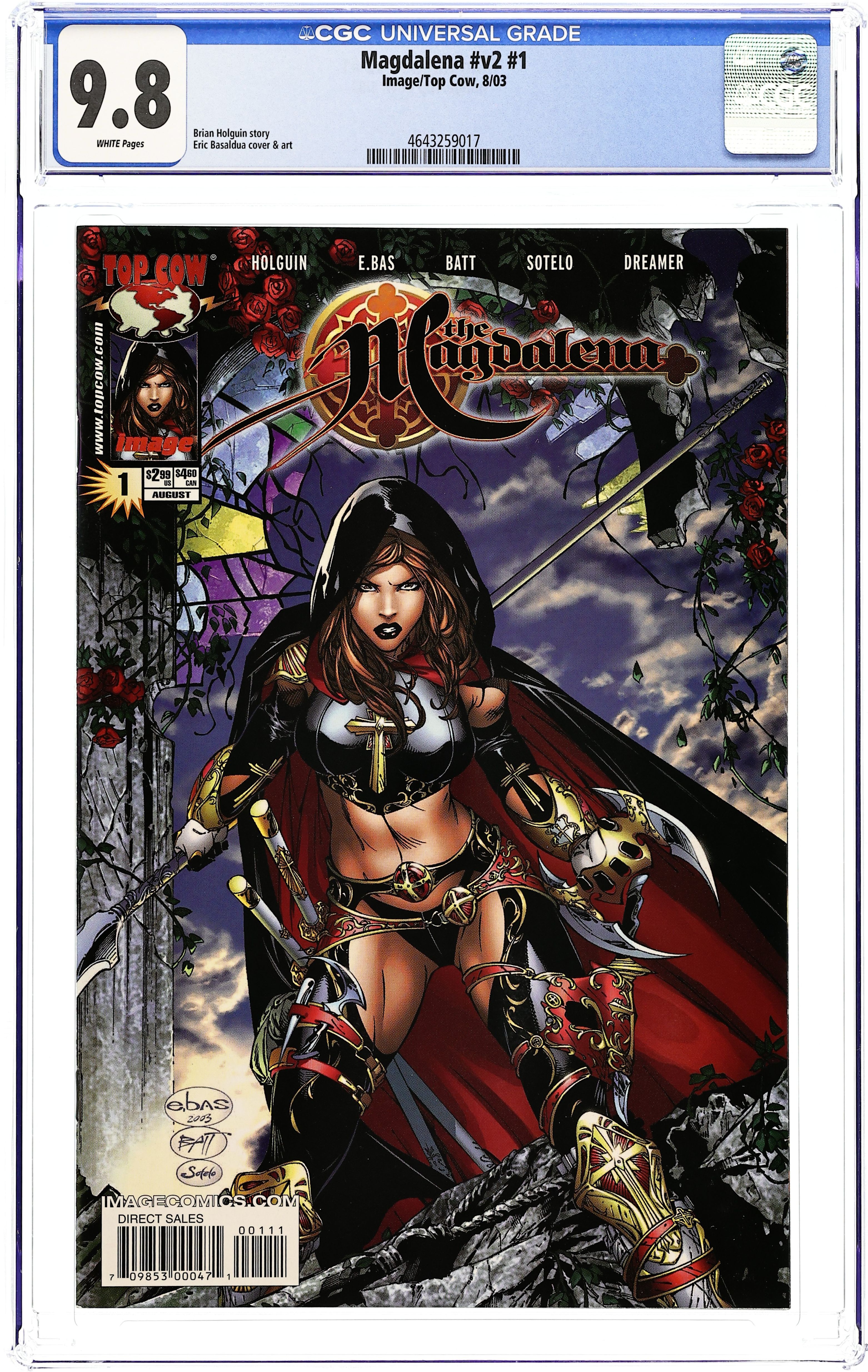 (W) Brian Holguin (P) Eric Basaldua (I) BATT (C) Beth Sotelo For 2000 years, the Madgalenas have battled in secret, protecting humanity from supernatural menaces of all types. Now Patience, a young and untrained beauty, must take on the role of the new Madgalena, perhaps even before she's ready. And wouldn't ya know it, Eric Basaldua, a young and well-trained penciler, takes on the responsibility of becoming Top Cow's next artistic superstar! He's ready. SHIPS WITH TWO COVERS IN A 50/50 SPLIT. Covers by Joseph Michael Linsner and by Eric Basaldua. FC 32 pages $2.99 mini series Cover price $2.99.