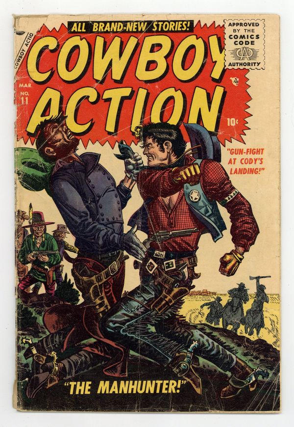 Two untitled Combat Kelly stories (scripts by Hank Chapman, art by Joe Maneely), plus "The Volunteer" (art by Paul Reinman), "The Yellow Feather," and a two-page text story, "The Dead Sentinel." Cover price $0.10.