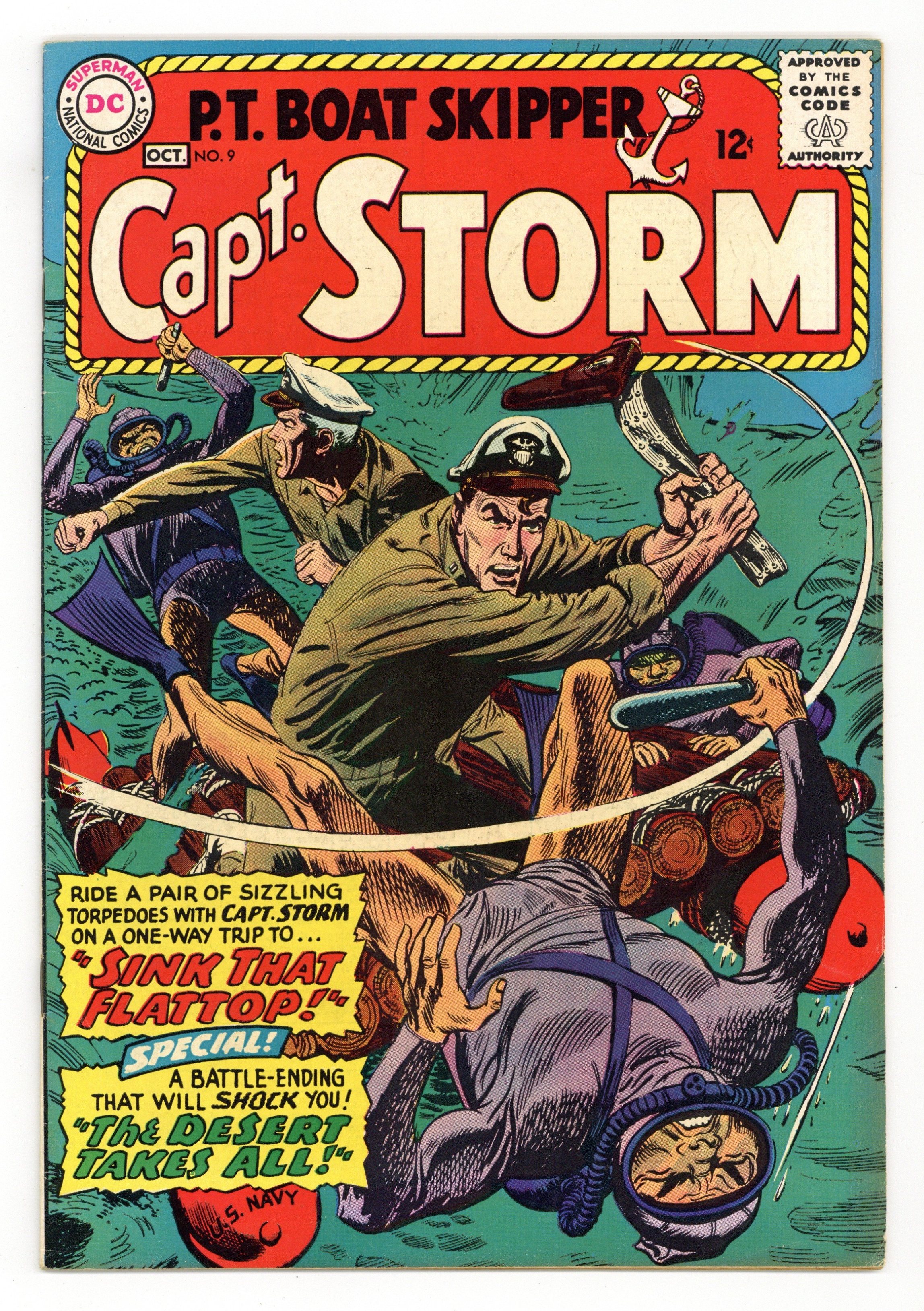 Combat Kelly in "The War Crime of Captain Chu," "Mud," and "Death in the Desert." Back-up story, "Cookie's Combat Course: Infantry Division." Art on all four by Dave Berg. Two-page text story, "Tank Trap." Cover price $0.10.