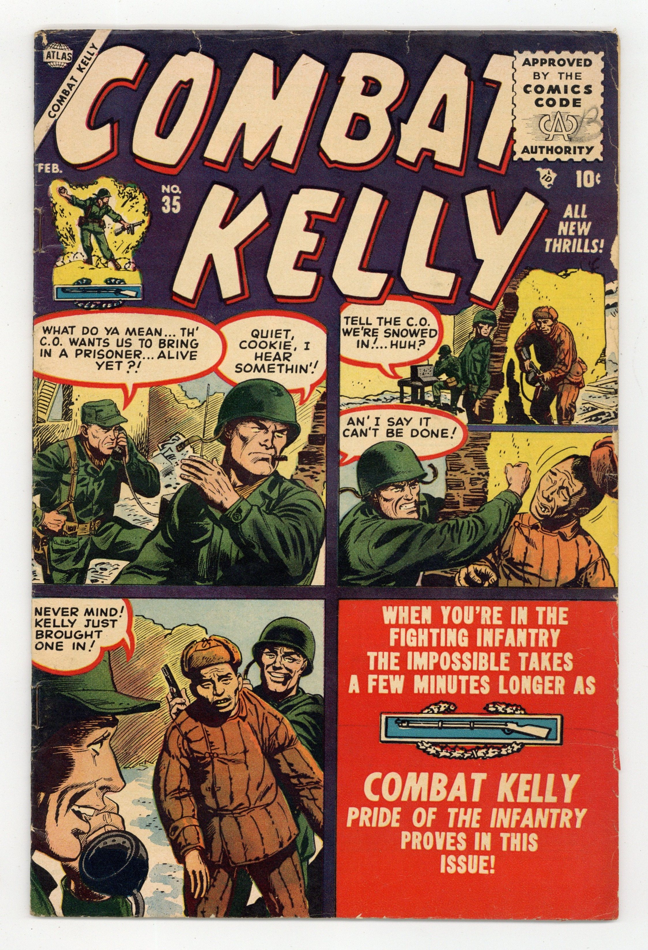 Three untitled Combat Kelly stories, plus "Cookie Cops a Cutie!" (scripts by Hank Chapman, art by Dave Berg). Two-page text story, "Bazooka Brigade." Cover price $0.10.