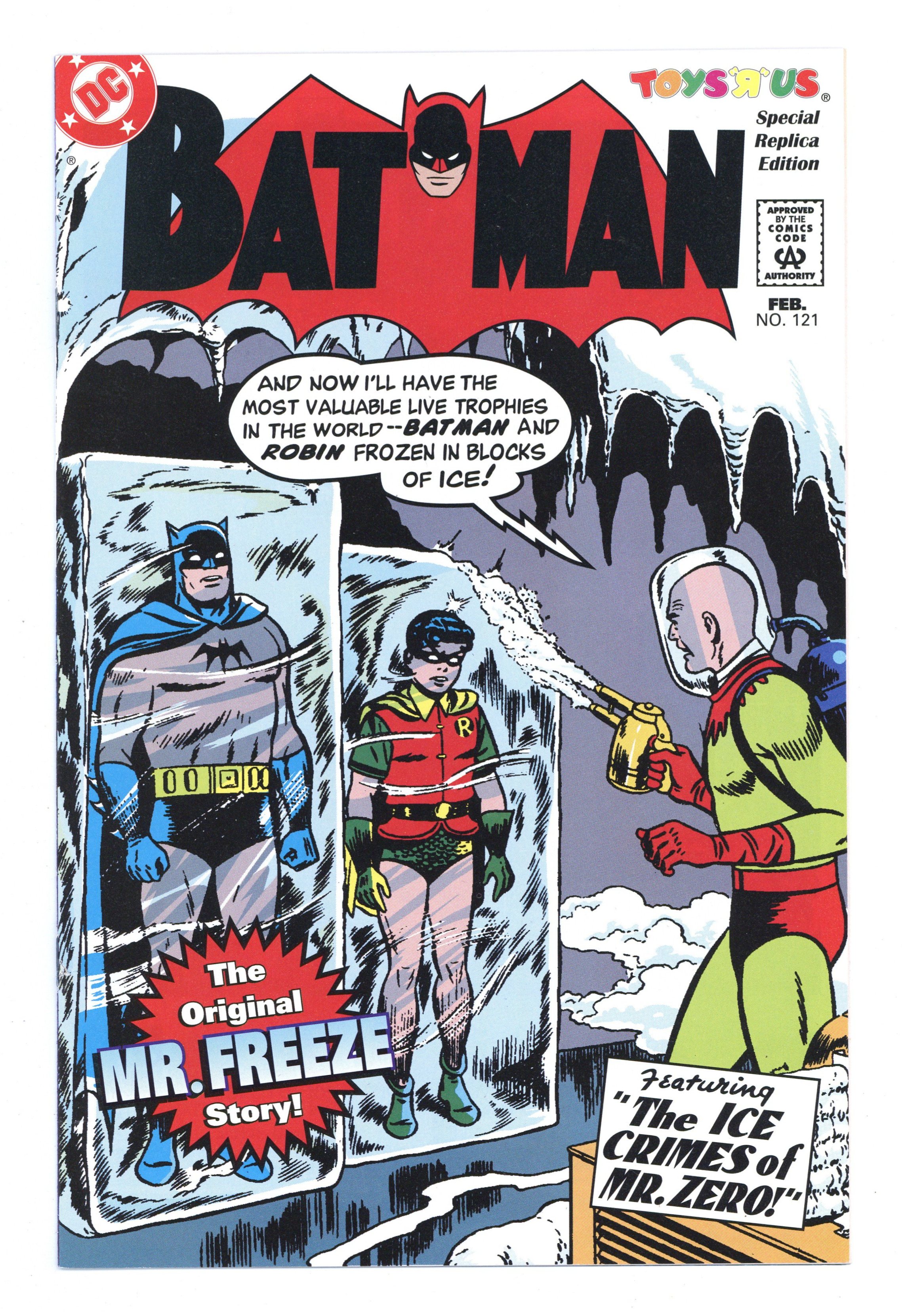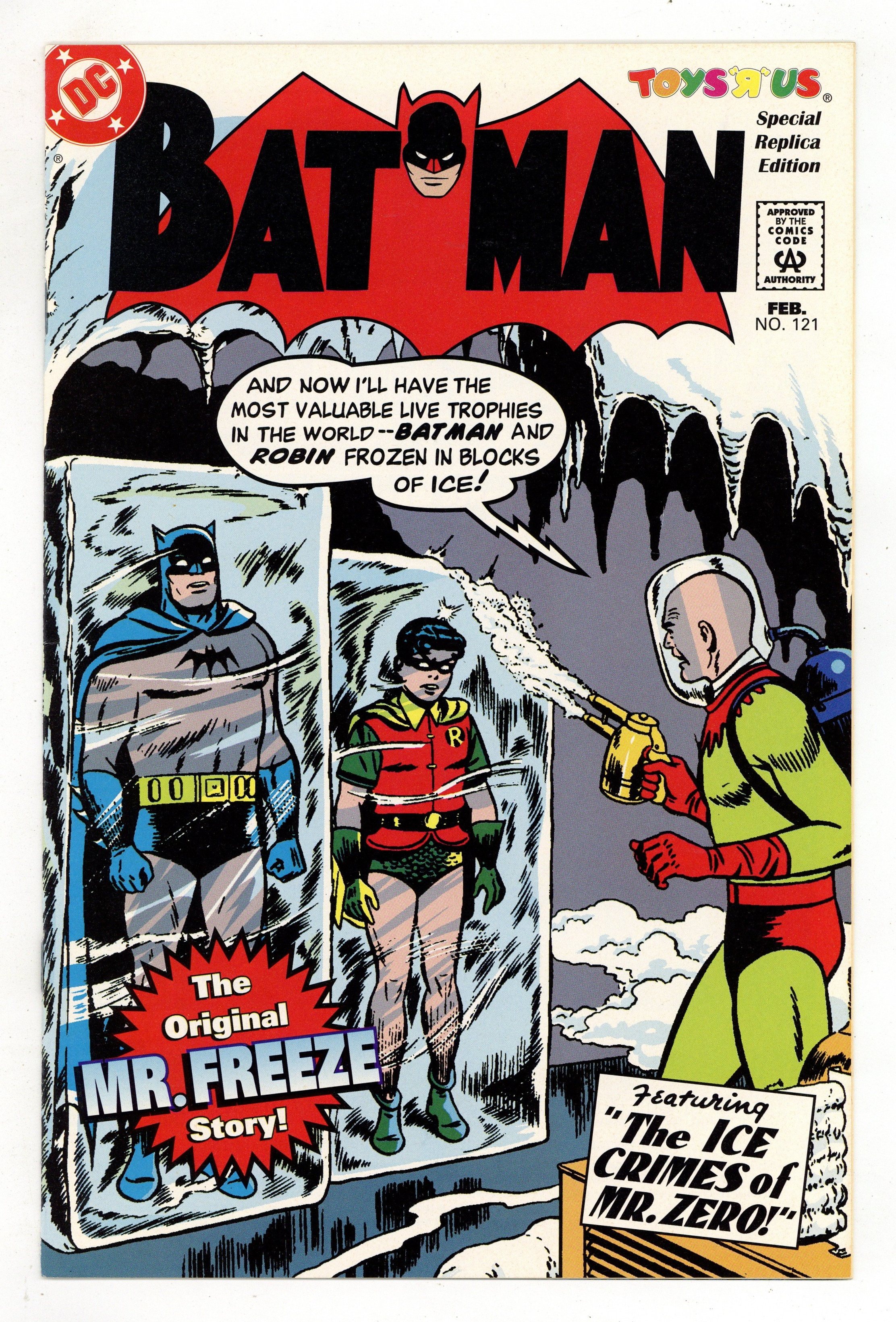 $29.00Toys R Us Special Replica Edition of Batman #121. 9 page reprint of "The Ice Crimes of Mr. Zero!", plus word games and puzzles. No cover price.