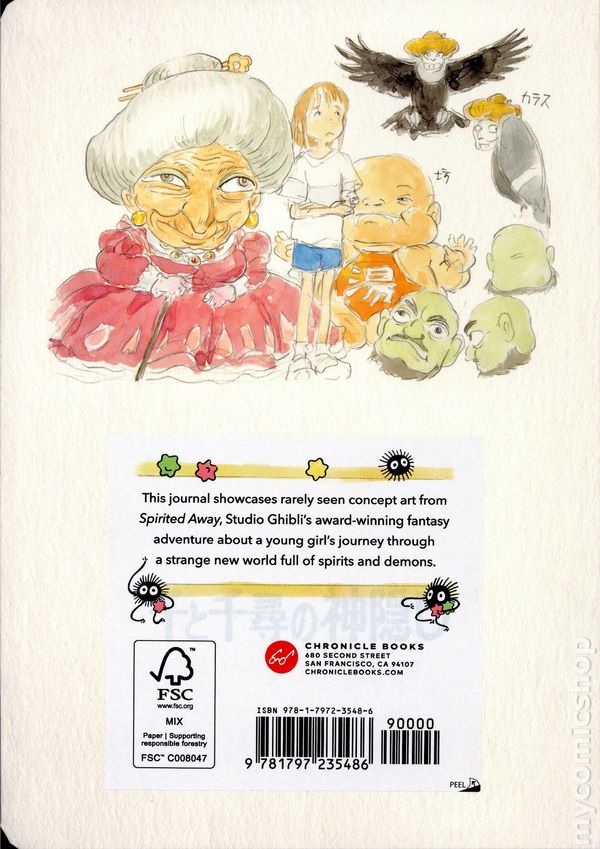 1st printing. This handy journal showcases rarely seen concept art from Spirited Away, Studio Ghiblis award-winning fantasy adventure about a young girls journey through a strange new world full of fantastic spirits.Complete with full-color artwork on the front and back covers, five interior spreads of concept art, and spot illustrations throughout, this journal is the perfect keepsake for Studio Ghibli fans and animation enthusiasts of all ages. Softcover, 5-in. x 7-in., 192 pages (Blank Lined Pages), PC.