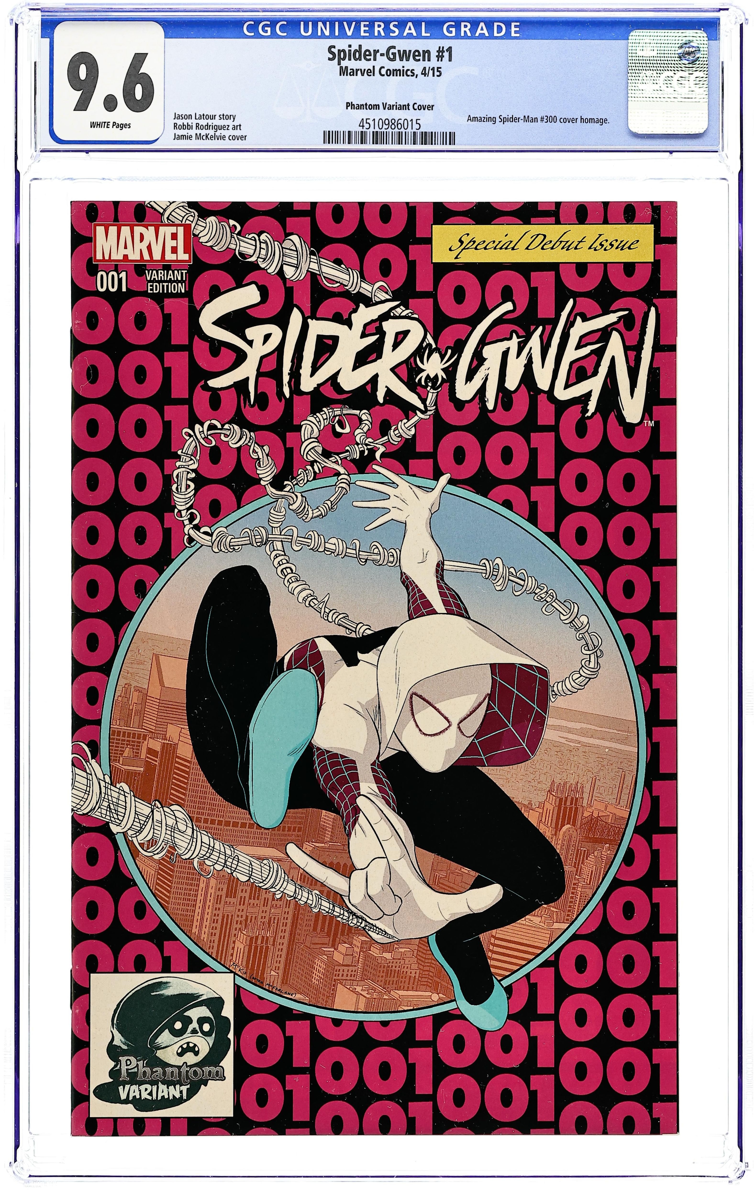 Phantom Variant Cover by Jamie McKelvie (after McFarlane). Written by Jason Latour. Art by Javier Rodriguez. SPIDER-GWEN SPINS INTO HER OWN SERIES! BECAUSE YOU DEMANDED IT! The breakout hit of the biggest Spider-Event of the century is taking comic shops by storm this winter with her own new ongoing series - SPIDER-GWEN! Gwen Stacy is Spider-Woman, but you knew that already. What you DON'T know is what friends and foes are waiting for her in the aftermath of Spider-Verse! 28 pages, full color. Rated T+