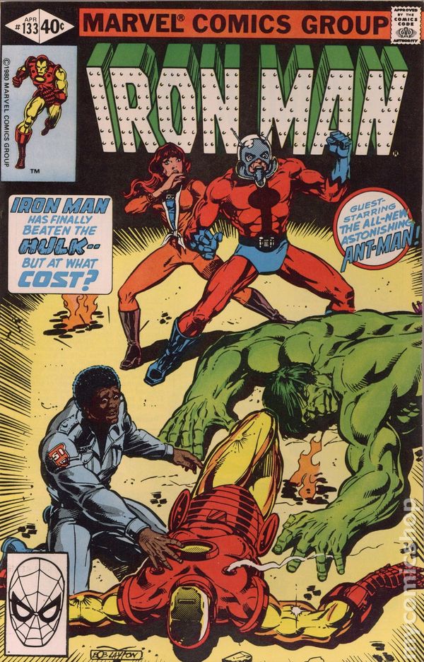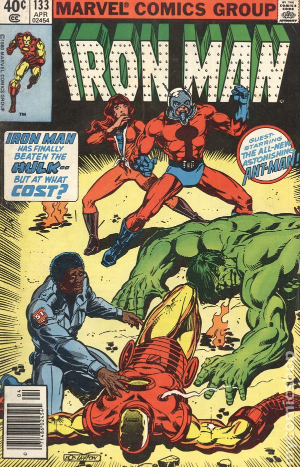 Newsstand Edition. "The Hero Within!" Part 3 of 3. Guest-starring the Hulk and Ant-Man (aka Scott Lang). Plot by David Michelinie and Bob Layton. Script by David Michelinie. Art by Jerry Bingham (layouts) and Bob Layton (finishes). Cover by Bob Layton. In incredible fashion, Iron Man has beaten the Hulk! But the cost of victory is steep! The invincible one's armor has sealed shut and the internal oxygen supply is dwindling! In a desperate effort to save Tony's life, Ant-Man enters Shell-Head's armor through one of his boot jets and then begins traversing his way to the helmet! Will the Astonishing Ant-Man complete his fantastic voyage in time? Cameo appearances by Jim Rhodes, Bethany Cabe, and Dr. Erica Sondheim. (Notes: Scott Lang's journey through Shell-Head's armor was a throwback to Hank Pym's journey though the Vision's body in the classic Avengers 93. This excellent 3-part story was reprinted in 2013 in the Iron Man Omnibus hardcover by Michelinie-Layton-Romita Jr.) 32 pages. Cover price $0.40.