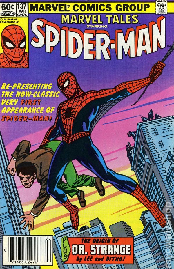 Direct Edition. Cover pencils by Jack Kirby, inks by Steve Ditko. Spider-Man!, script by Stan Lee, art by Steve Ditko; reprinted from Amazing Fantasy (Marvel, 1962 series) #15; Peter Parker gets bitten by a radioactive spider and becomes Spider-Man. Unused cover for Amazing Fantasy #15, first time in color, art by Ditko. The Origin of Dr. Strange, script by Stan Lee, art by Steve Ditko; reprinted from Strange Tales (Marvel, 1951 series) #115. Dr. Strange pinup by Steve Ditko. Peter Parker as.. Spider-Man pinup by Ditko. 36 pgs. $0.50. Cover price $0.60.