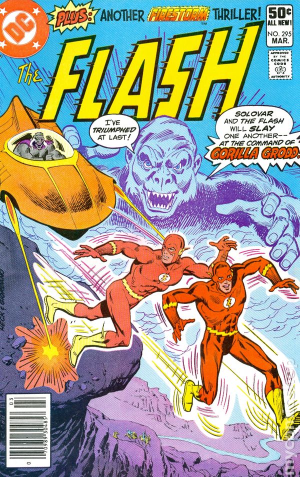 Newsstand Edition. Cover pencils by Don Heck, inks by Dick Giordano. In Grodd We Trust, script by Cary Bates, art by Don Heck; Flash and gorilla pal Solovar battle one another. By The Dangerous Sea, script by Gerry Conway, pencils by Jim Starlin, inks by Bob Wiacek; Firestorm encounters the Human Typhoon. Hostess Cup Cakes ad with Wonder Woman. Star Wars Fan Club ad. 36 Pages, Full Color. Cover price $0.50.