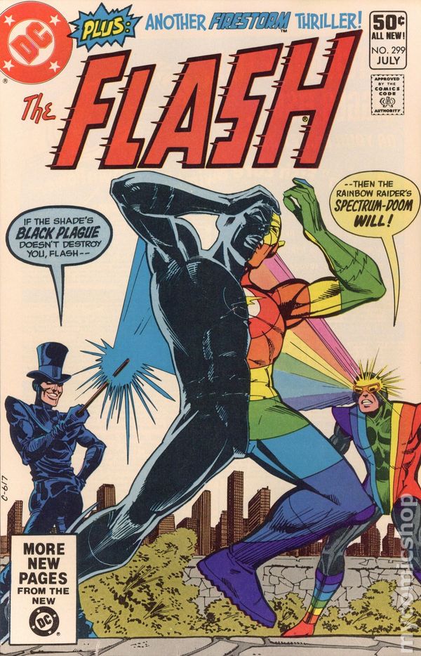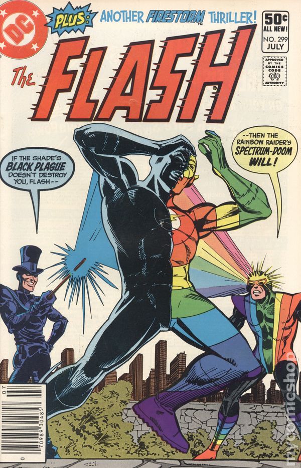 Newsstand Edition. Cover pencils by Carmine Infantino, inks by Dick Giordano. A Stab in the Black, script by Cary Bates, pencils by Carmine Infantino, inks by Bob Smith; Flash forms a shaky partnership with Shade; Rainbow Raider guest-stars. The Robbery, script by Gerry Conway, pencils by Denys Cowan, inks by Dennis Jensen; A common man commits a crime that he thinks will be under Firestorm's radar. 36 Pages, Full Color. Cover price $0.50.