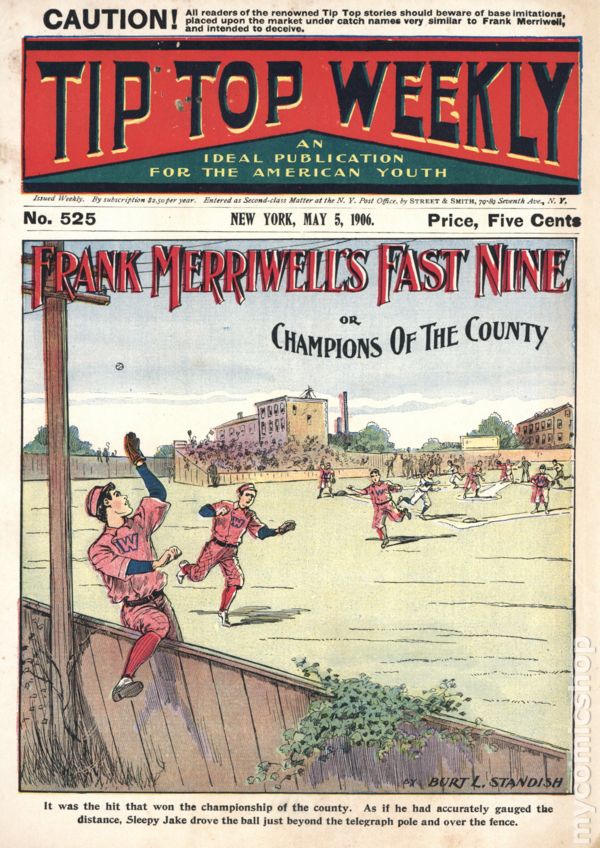 October 27, 1906. Written by Burt L. Standish (Gilbert Patten). Tip Top Weekly was promoted as "An Ideal Publication for American Youth," and was primarily devoted to the continuing adventures of student Frank Merriwell, who started at a fictional New England academy and then went to Yale, eventually becoming an international adventurer. Newsprint. 8" x 11", 36 pages, Text. Cover price $0.05.