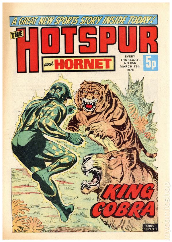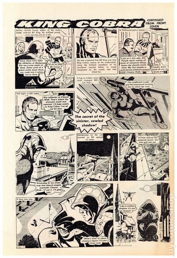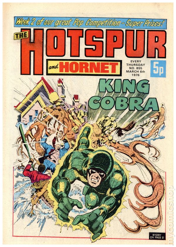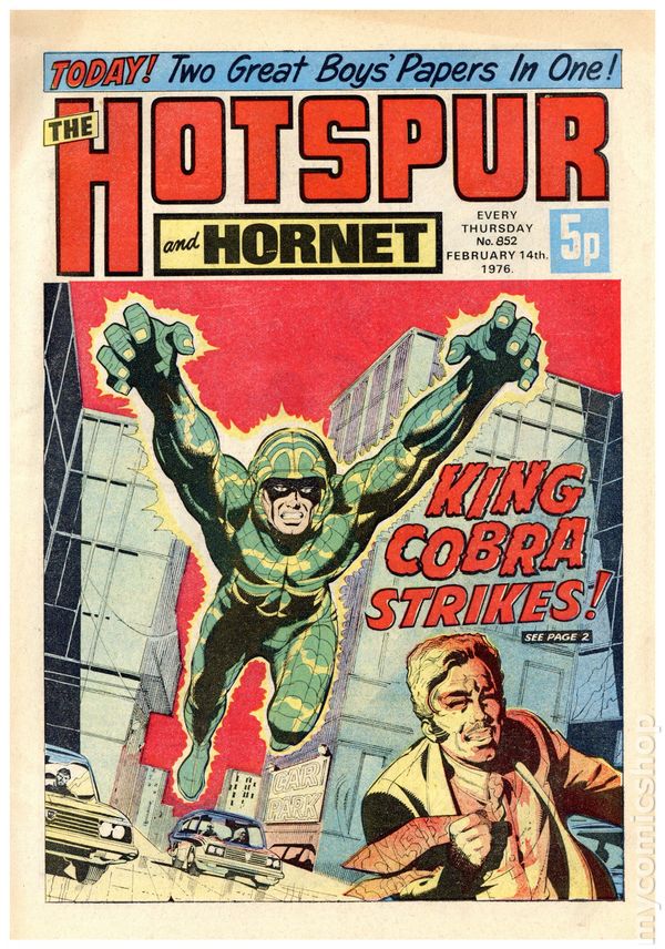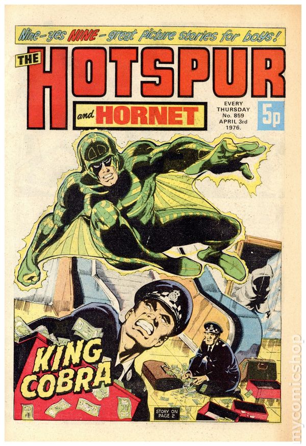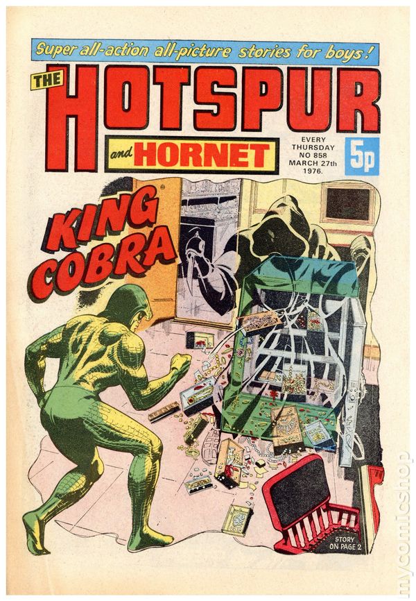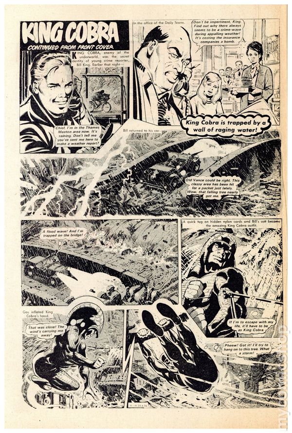 UK series. March 20th, 1976. Stories include: King Cobra, Napper Todd, Wilson's Wonders, Outlaws of the Sacred Sword, Cowardly Custer, Bernard Briggs, The Blockbusters, Danny Boyd Golf Star in the Making, and The big Palooka. 8 1/4" x 12", 32 pages, PC/PB&W, 5p cover price.