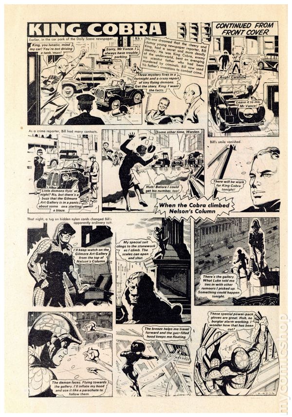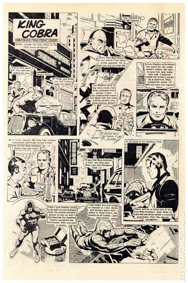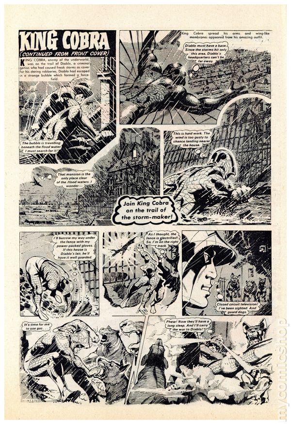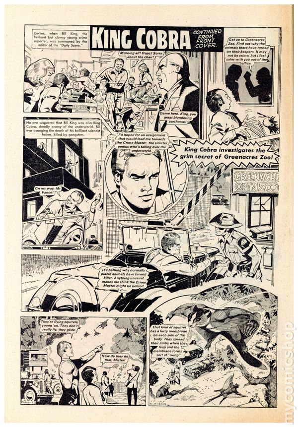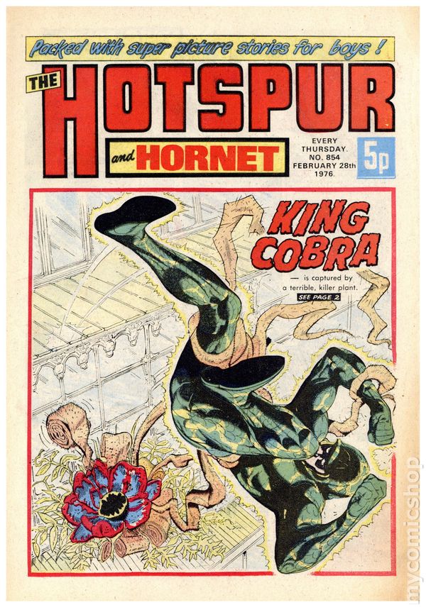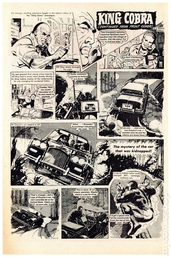UK series. March 20th, 1976. Stories include: King Cobra, Napper Todd, Wilson's Wonders, Outlaws of the Sacred Sword, Cowardly Custer, Bernard Briggs, The Blockbusters, Danny Boyd Golf Star in the Making, and The big Palooka. 8 1/4" x 12", 32 pages, PC/PB&W, 5p cover price.