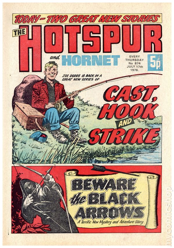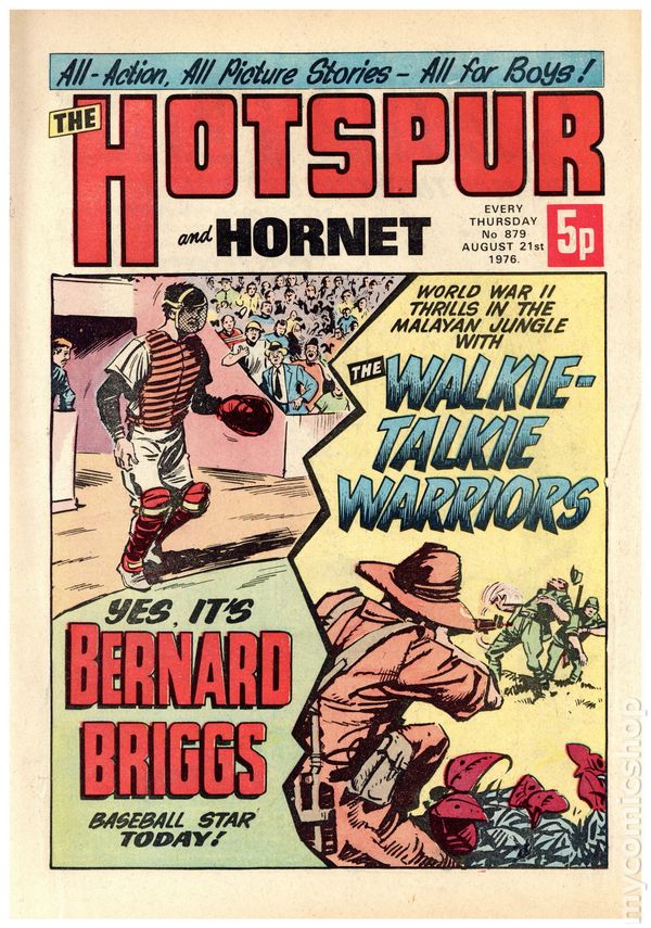 Hotspur and Hornet - July 31st, 1976. Stories include: The Walkie-Talkie Warriors, Cast, Hook and Strike, The Band Rat, They're Star, Raven, Madd!, The Goals Nobody Cheered, Beware the Black Arrows, Smasher Roo, Briggs the Goalie, and Charlie's Ant. 8 1/4" x 12", 32 pages, PC/PB&W, 5p cover price.