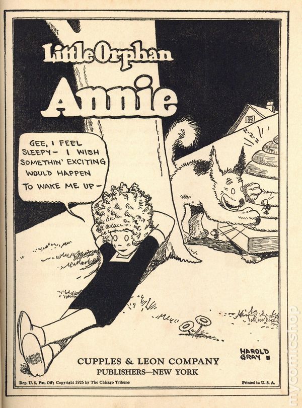 View scansNo dust jacket. Little Orphan Annie by Harold Grey, copyright 1926, Cupples & Leon Company. Hardback, 100-pages, 7 x 8-3/4 inches, color cover with black-and-white newspaper pre-prints interior, no cover price. NOTE: Spine may be one of several colors.