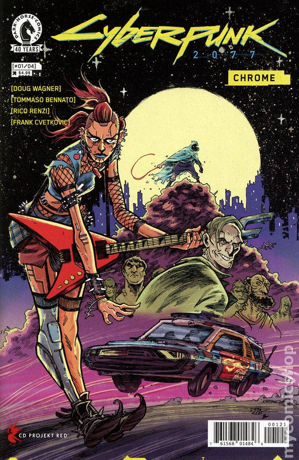 (W) Doug Wagner (A) Tommaso Bennato (CA) Tommaso Bennato (C) Rico Renzi A group of friends including a netrunner, a fire graffiti artist, an aspiring rockerboy, and an autotechie set off for a fun photoshoot at a landfill, where among heaps of rubbish, scrap, and metal, they'll find a shot to die for! Rumor has it the place is haunted, and they're about to find out, in Night City, there are things far more frightening than ghosts. A dark comedy horror set in the world of Cyberpunk 2077! Created in close collaboration with CD Projekt Red! Four-issue series. 28 pages, not rated, full color Cover price $4.99.