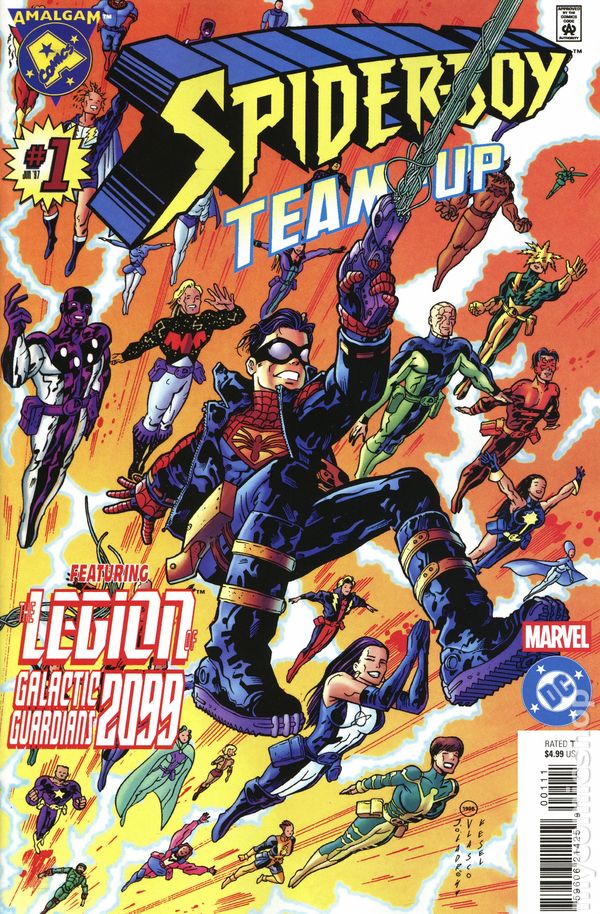 (W) Karl Kesel; Roger Stern (A) Jose Ladronn (CA) Jose Ladronn As iconic heroes of two worlds collide in the Amalgam Universe, Spider-Boy shares a mind-bending adventure in time with the Legion of Galactic Guardians 2099! As the Arach-Kid battles his airborne adversary, the Scalvulture, little does he know his fate hangs perilously in the balance - and all hope of salvation lies a century away with an assemblage of young heroes inspired by his legendary adventures! But can the Legion of Galactic Guardians 2099 avert the doom of their idol without causing complete chronal collapse? Or will their actions only bring it about?! Plus: Get ready to meet the sensational Spider-Boy of tomorrow! After almost 30 years, one of the all-time great DC/Marvel crossover comic books is boldly re-presented in its original form - ads and all! Reprinting SPIDER-BOY TEAM-UP #1. 32 pages, full color, rated T. Cover price $4.99.
