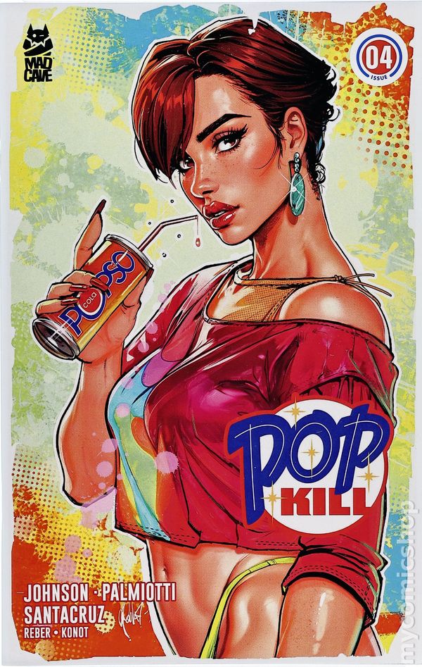 Written by Jimmy Palmiotti, Dave Johnson. Art by Juan Santacruz. Cover by J. Scott Campbell. Pop, Fizz, Bang! The conclusion of a pulse-pounding cocktail of sabotage, seduction, and soda-fueled frenzy! The Cola Wars are reaching a bubbling-over point, and nothing is off-limits. Feuding billionaire brothers, once conjoined twins, now wage all-out war through subterfuge, espionage, and hired guns. As both corporations close in, Dina and Jon must decide whether to surrender to their bosses, their hearts—or a plan so explosive it could bubble over into chaos. 32 pages, full color. Rated M Cover price $6.99.