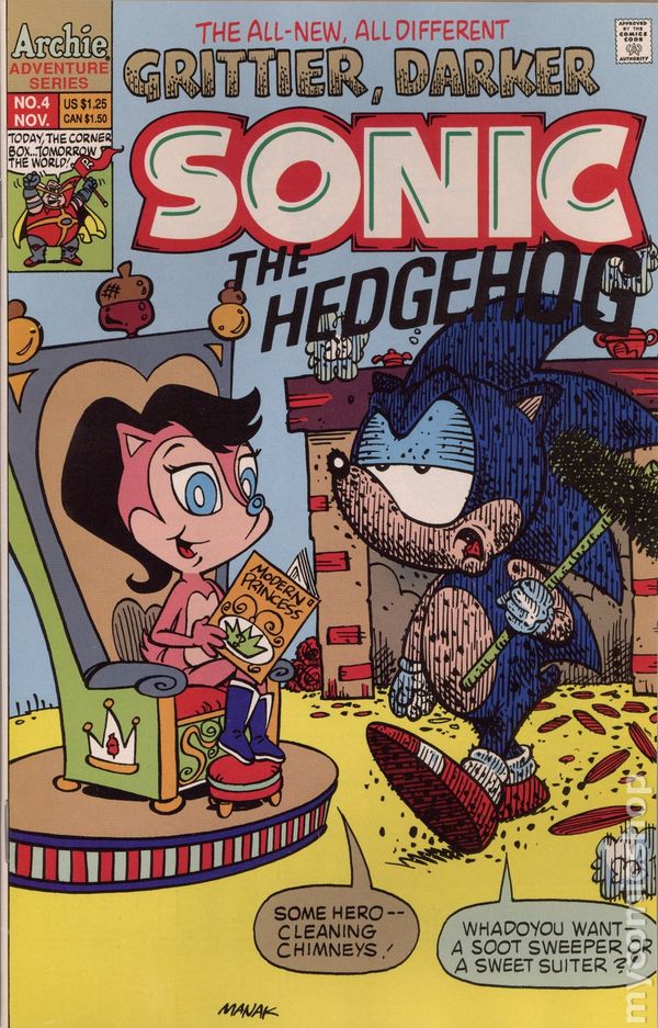 View scanDirect Edition. Cover art by Dave Manak. The Lizard Of Odd; Dr. Robotnik roboticizes a small lizard into a towering menace bent on destroying Sonic. Antoine's Vain Refrain. Horizont Al & Verti Cal. Bad-Niks Bazaar. Hair Styling. Tails' Little Tale; Tails tries to destroy one of Dr. Robotnik's factories without help from Sonic. Scripts by Michael Gallagher, pencils by Dave Manak, inks by Scripts by Michael Gallagher, pencils by Dave Manak, inks by Jon D'Agostino. Robotnik Birthday Card, art by Manak. Super Sonic Pin-Up, art by Manak. Inspired by the Sega Genesis videogame. 32 pgs. $1.25. Cover price $1.25.