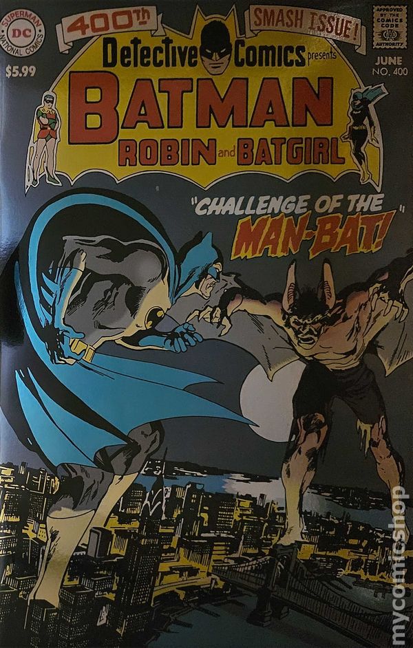 Foil Cover. Written by Frank Robbins, Dennis O Neil. Art by Neal Adams, Gil Kane. Cover by Neal Adams. THE HARROWING FIRST APPEARANCE OF MAN-BAT! This classic Bronze Age tale, penciled by master Batman artist Neal Adams, returns in a full facsimile edition. When an experiment by zoologist Kirk Langstrom produces horrifying side effects, Batman is confronted with a new bat in Gotham as he faces the Challenge of the Man-Bat! Also features the Batgirl and Robin team-up A Burial for Batgirl! 32 pages, full color. Rated T+ Cover price $5.99.
