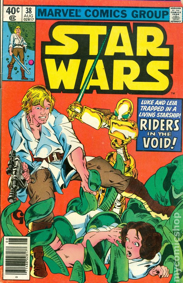 Newsstand Edition. Cover art by Walt Simonson. "The Last Jedi!", script by Mike W. Barr, pencils by Walt Simonson (breakdowns) and Tom Palmer (finished art), inks by Tom Palmer; Can Luke and Leia return a prince back to his planet before his younger brother, an Imperial sympathizer, will gain control of the planet? Hostess Cup Cakes ad, Spider-Man VS. The Human Computer! 36 pgs., full color. Cover price $0.50.